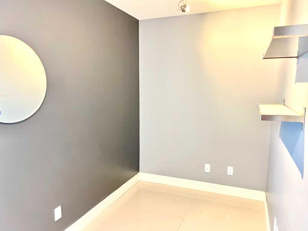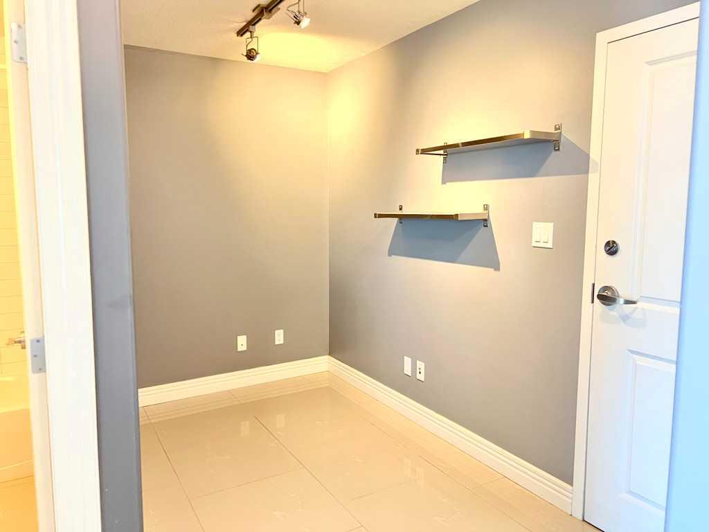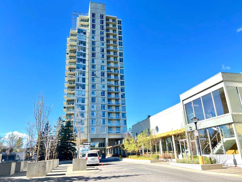 Public Remarks Welcome to this stunning one-bedroom plus den condo with breathtaking views and a host of impressive features. The unit boasts 9-foot ceilings and an open-concept design, creating a spacious, modern living space. Upgraded throughout, it includes elegant porcelain flooring and a gourmet kitchen featuring custom maple cabinetry, a built-in wine rack, glass tile backsplash, granite countertops, and sleek black appliances. The central island is complemented by a convenient breakfast bar. The dining and living areas are illuminated by floor-to-ceiling windows, with a cozy corner fireplace finished in Tumblestone for a warm, inviting ambiance. The stylish bathroom includes a raised basin vanity, and the unit is equipped with in-suite laundry and central air conditioning. Step out onto the balcony, complete with a BBQ gas hookup, and take in the stunning views of the mountains, city skyline, and nearby golf course. Residents enjoy access to on-site amenities such as 24-hour security, a swimming pool, hot tub, gym, and recreation area, all connected via the +15 walkway system. This condo is perfectly located, just steps from the C-Train station, Library, Westbrook Mall (Safeway and Walmart), Shaganappi Golf Course, bike paths along Edworthy Park, and major transportation routes.