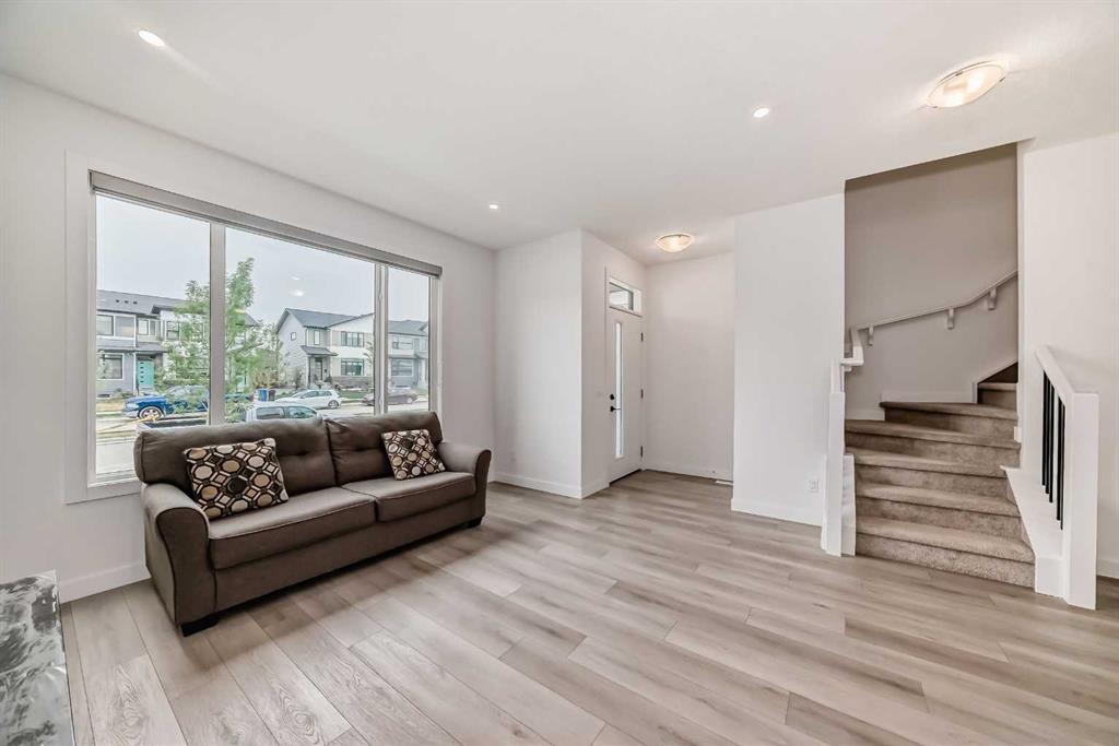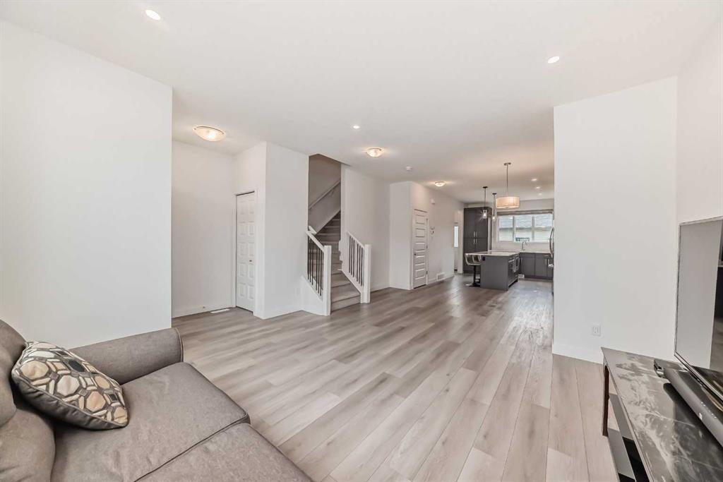 Welcome to this exceptional NO CONDO FEE END UNIT townhome in the vibrant Belvedere community, where you benefit from contemporary living at its finest. Step inside to find a spacious main floor with 9-foot ceilings and an open-concept design that invites an abundance of natural light through triple-pane windows and elegant luxury vinyl plank flooring throughout the main floor. The heart of the home is the stunning, fully upgraded kitchen, equipped with top-of-the-line stainless steel appliances including a gas range and a full size refrigerator. On the upper level, the master suite offers a serene retreat with a private en-suite bathroom, while two additional bedrooms and a full second bathroom provide ample space for family or guests. The backyard is a true highlight, featuring a fully fenced and beautifully landscaped area with a large deck, perfect for entertaining or relaxing outdoors. The double-car garage adds convenience and ample storage. Located just a block from East Hills Shopping Center, enjoy easy access to Costco, Walmart, Cineplex, Sport Chek, and a diverse range of dining options. Nearby pond and playgrounds further enhance the appeal of this fantastic home.