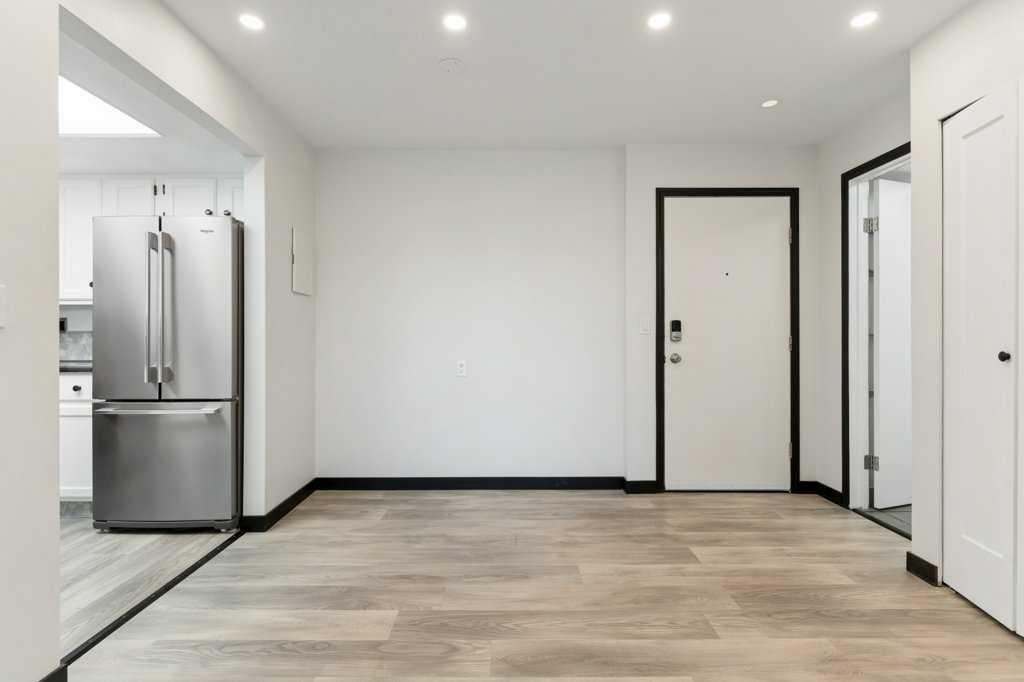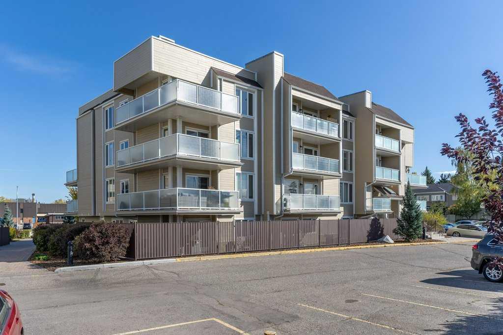 Spacious and Stylish UPDATED 1 bedroom condo in Varsity! This well kept complex is located steps from Market Mall, with amazing access to the University District and the U of C campus. The open and bright floor plan features brand new laminate flooring and fresh paint through out! Enter the unit in to the generous dining space, which offers lots of space and flexibility, and a good sized coat closet for extra storage. The kitchen has been updated with freshly painted white cabinets, epoxy counter tops, new tile backsplash, stainless steel appliances, and a pass through window in to the living room, which features a fireplace, and access to the large balcony. The oversized bedroom offers plenty of storage in the large closet with mirrored doors. In the bathroom, there is a newer vanity, tile flooring, and lots of shelving for storage. This unit comes with 1 assigned parking stall, and there is visitor parking and street parking available for guests. There is a bright and clean laundry room in the building. Enjoy additional outdoor space in the lovely courtyard. The convenient location makes commuting easy with great access to transit, Shaganappi Trail, Crowchild Trail and 16th Avenue, and located close to all amenities for dining, shopping and much more!