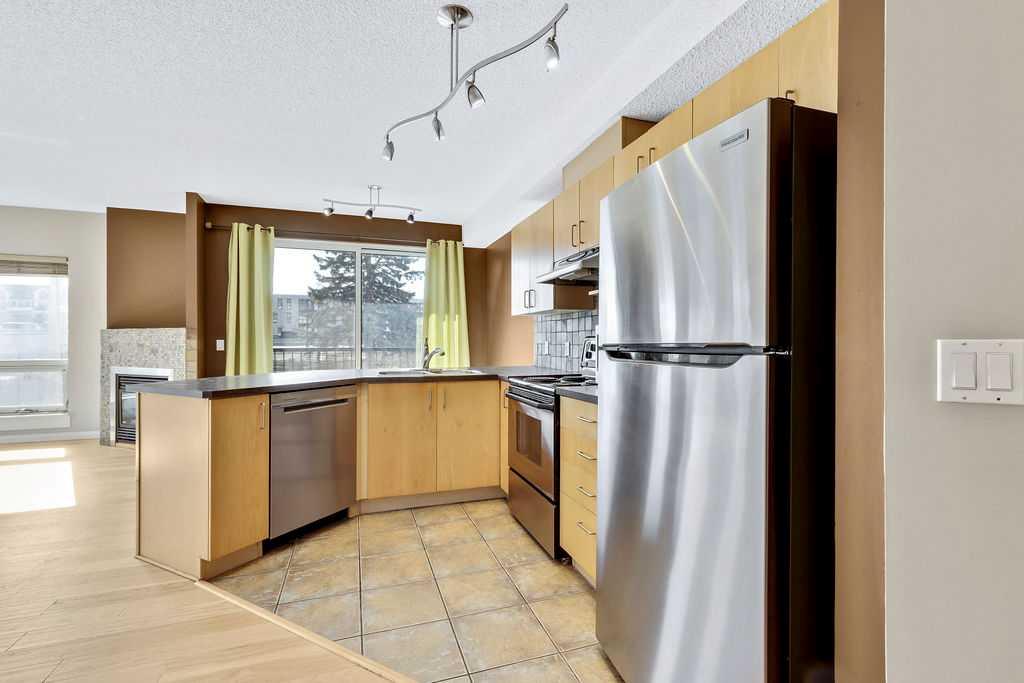 This well-sought-after unit, situated on the Second floor of The Solarium building, offers two bedrooms, The Bathroom features a full-sized stand-up shower with access to the primary room, unit also features private in-suite laundry and ample closet and storage space. The kitchen provides generous counter space, numerous cabinets, and a pantry, while the open-concept layout is accentuated by copious natural light entering through the expansive windows and upgraded engineered hardwood flooring (both updated in 2021). During warmer months, enjoy entertaining on the oversized deck off the living room facing east and an additional balcony off the dining room equipped with a gas line, facing south, while a gas fireplace provides warmth during cooler months. The location boasts an excellent walk score, with the new BMO Centre and Saddledome a brief walk away, along with 17th Avenue shops and dining nearby, and convenient access to the downtown core. Building near C-Train will make your morning commute a dream. This solid concrete building presents an exceptional opportunity to invest in property within the dynamic city of Calgary.