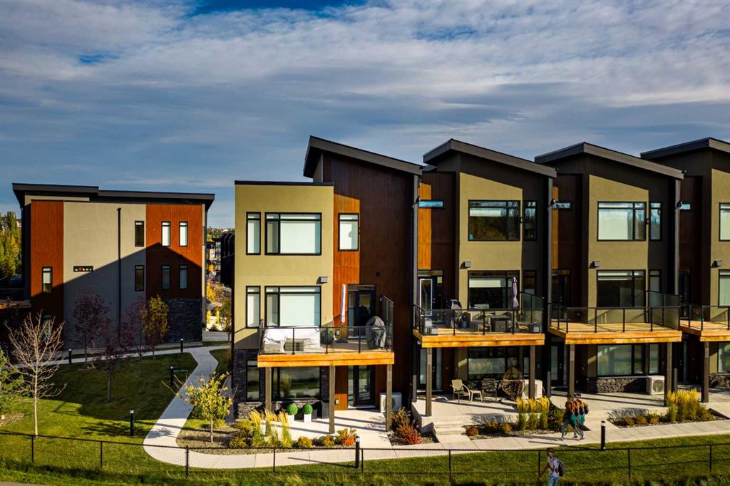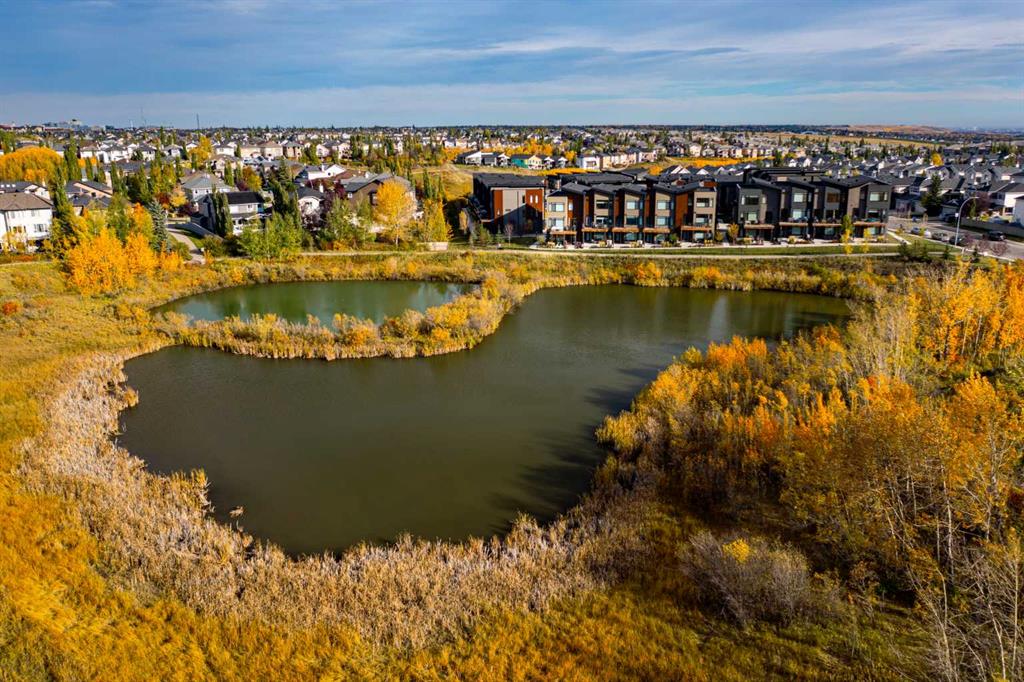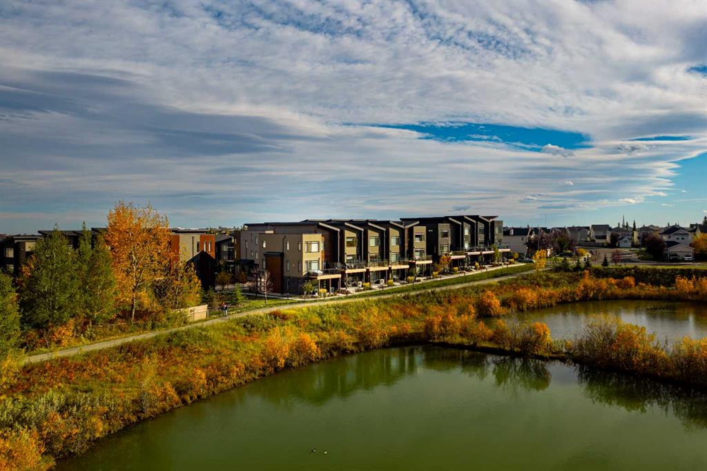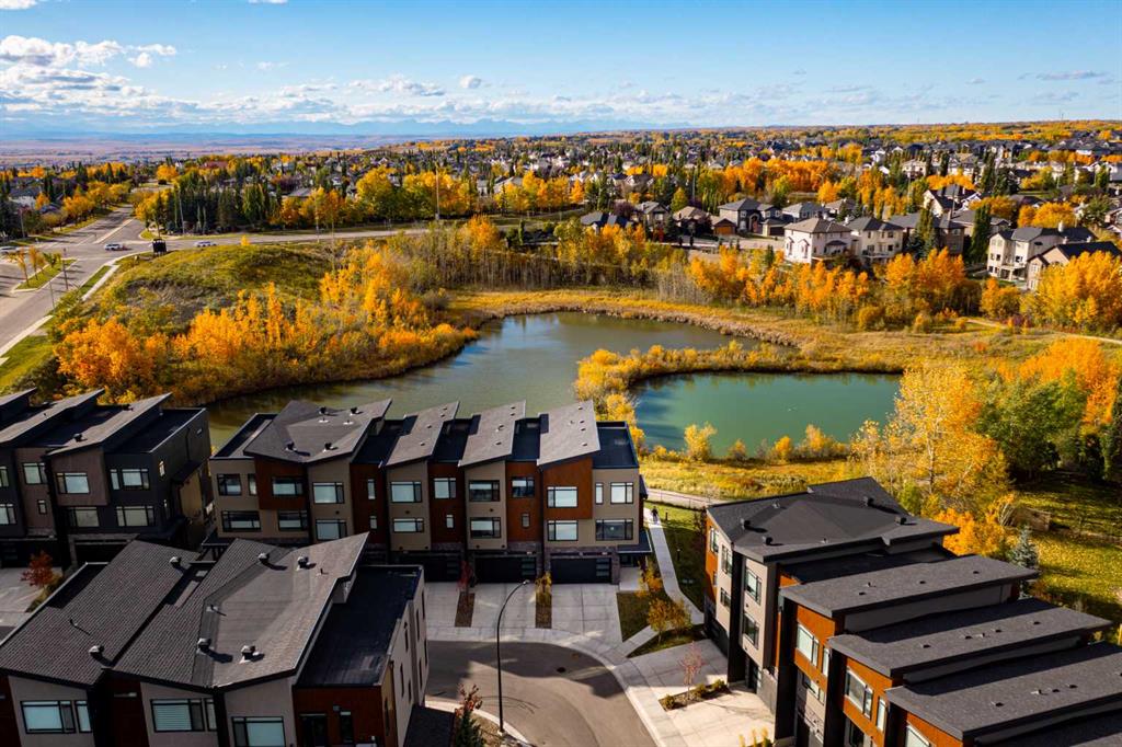 SLEEK, STYLISH, SOPHISTICATED, with over $70,000 of upgrades above the already high end specifications Janssen Homes offers, this executive luxury townhome is an exquisite blend of modern sophistication and natural serenity, designed for those who value both comfort and style. This 3 bedroom CORNER unit townhome is Nestled within a private enclave, the home is surrounded by lush green spaces, offering a tranquil escape from the bustle of city life. Large, floor-to-ceiling windows provide panoramic views of ponds, mature trees, and scenic walking paths, creating an ambiance of seamless indoor-outdoor living. The exterior of the home boasts elegant architectural lines, complemented by high-end finishes such as high end no maintenance facades, custom brickwork, and contemporary lighting and much more. A private, landscaped side courtyard welcomes you into the expansive open-concept interior, where natural light floods through every room. Pride of ownership show throughout this immaculate home and features high ceilings and high-quality finishing including polished wide plank oak LVP floors, quartz countertops, silgranite kitchen sink, custom cabinetry throughout, epoxied garage floor, with additional cabinetry, custom plumbing, lightning, blinds, audio system throughout, central air and so many upgrades too numerous to count. The gourmet kitchen is equipped with state-of-the-art appliances, a spacious oversized island with additional storage, perfect for hosting intimate dinners or grand gatherings. The living areas flow effortlessly, with a grand fireplace anchoring the main living room, which opens to a WEST FACING private terrace overlooking the surrounding greenery, ponds and natural beauty. Upstairs, the primary suite is a true retreat, offering a spa-like en-suite bathroom with a soaking tub, 10mm glass-enclosed shower, and heated floors. Large windows invite views of the peaceful greenery, and the generous walk-in closet is a fashion lover’s dream. Additional bedrooms are equally oversized, well-appointed, each with access to a luxurious bathroom, and one may easily serve as a home office, private library or exercise room The lower level features a fully finished walk out, wet bar, a covered patio backing onto walking paths ideal for a media room, gym, or additional guest space. With direct access to a private, double-car garage with epoxied floors, builtins and still room for 2 vehicles! This residence is designed for ultimate convenience and luxury. The surrounding green spaces include private access to parks, walking trails, c-train, amenities, Recreation centre’s, restaurants, shopping, tennis courts offering a perfect balance of exclusivity and connection to nature.