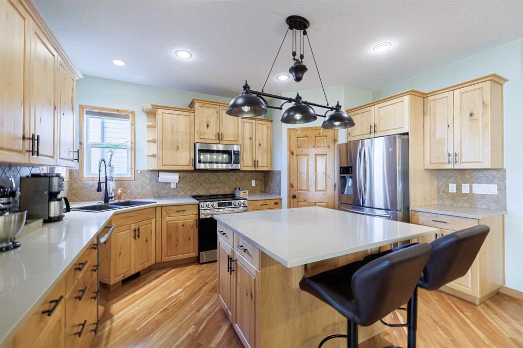 Welcome to this stunning, thoughtfully designed property nestled in the sought-after community of Kincora. Upon entering, you are greeted by a spacious main foyer that opens into the expansive, open-concept main floor, setting the tone for the home's welcoming ambiance. At the heart of this level is the beautifully appointed kitchen, boasting premium stainless steel appliances, a large square center island with quartz countertops, and a convenient walk-in pantry. The kitchen’s design effortlessly blends function and style, overlooking the backyard and flowing seamlessly into a casual dining area that opens onto an expansive deck—perfect for indoor-outdoor entertaining. For more formal occasions, a separate dining room offers plenty of space for family gatherings and hosting guests. Adjacent to the kitchen is the inviting living room, where a striking feature wall and a double-sided gas fireplace create a cozy yet elegant atmosphere. Upstairs, the home continues to impress with another large family room bathed in natural light from its generous windows, providing an additional space for relaxation or play. The primary bedroom is a true retreat, featuring large windows that flood the room with light, a luxurious five-piece ensuite, and a spacious walk-in closet. Two additional bedrooms and a stylish four-piece bathroom complete the upper level, offering ample space for this family friendly home. The fully developed lower level extends the living space even further, featuring another family room, a fourth bedroom, and a sleek three-piece bathroom, making it ideal for extended family, visitors, or as a flexible living space. The oversized double garage, accessible through the main floor mudroom and laundry area, provides convenience and plenty of storage. Situated on a quiet street, this home offers a peaceful setting with the added benefit of being just steps away from Kincora's beautiful ravines and walking paths. The exterior of the home is currently undergoing a full renovation, including new siding and a new roof, enhancing its already impressive curb appeal. The backyard provides additional outdoor living space, perfect for enjoying Calgary’s beautiful seasons. This Kincora gem seamlessly blends comfort, style, and practicality in one of Calgary's most desirable North West communities.