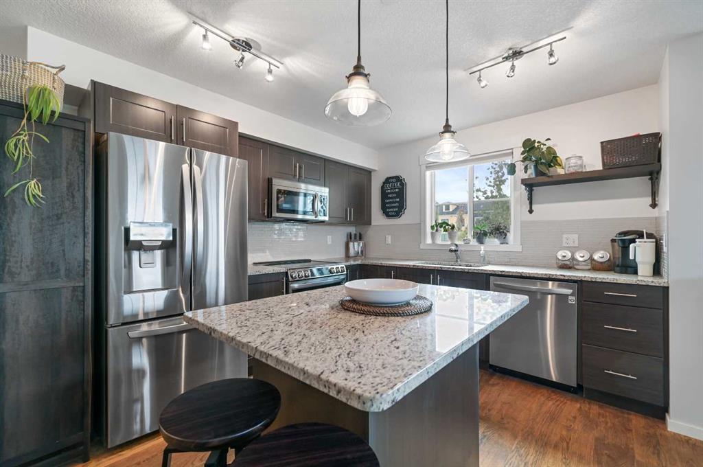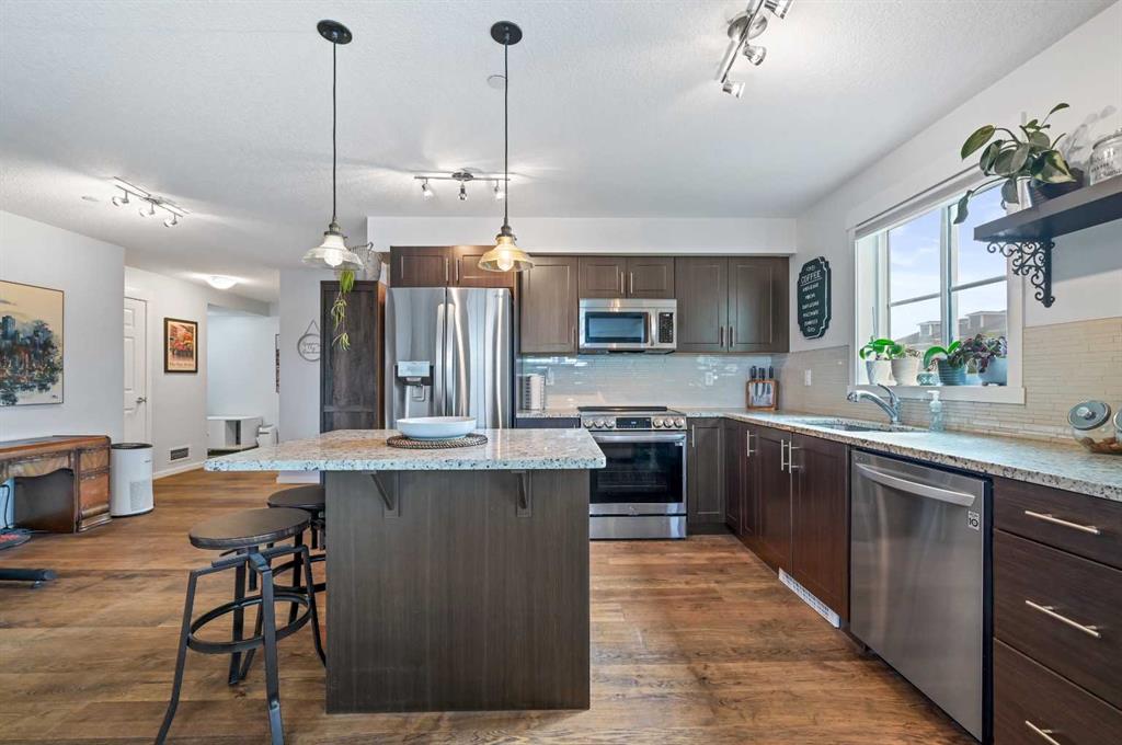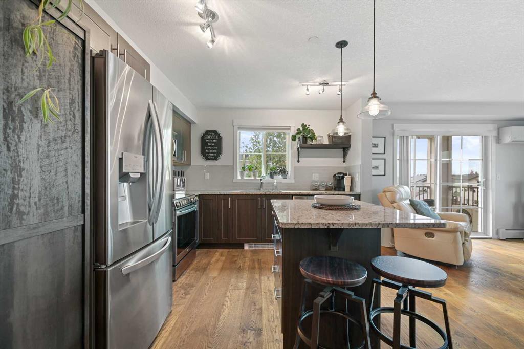 Welcome to your spacious 3rd-floor corner unit in Copperfield Park III, featuring 2 large bedrooms, 2 full bathrooms, and an open floor plan. with lots of natural light. The modern kitchen features granite countertops, newer stainless-steel appliances, and plenty of cabinet storage. The open living area is perfect for relaxing with its cozy fireplace and central air conditioning updated less than 2 years ago, ensuring year-round comfort, and the large windows for natural light from all directions, or easily step out to your private balcony, with gas hookup. The engineered hardwood flooring throughout the main areas adds a fresh and modern touch, while the bedrooms been updated newer, plush carpet. The generous primary bedroom includes a walk through closet and private 3pc ensuite bathroom, while the second bedroom is perfect for guests or a home office, located on the opposite side for privacy. The main 4 pc bath and convenient in suite laundry complete the package. This unit also includes titled underground parking and an accompanying storage locker Located in one of Calgary’s most desirable SE communities, with access to walking paths, green spaces, and close to shopping and transit, this completely move-in ready condo is perfect for anyone seeking both comfort and convenience. Don't miss this opportunity; schedule your private viewing today!