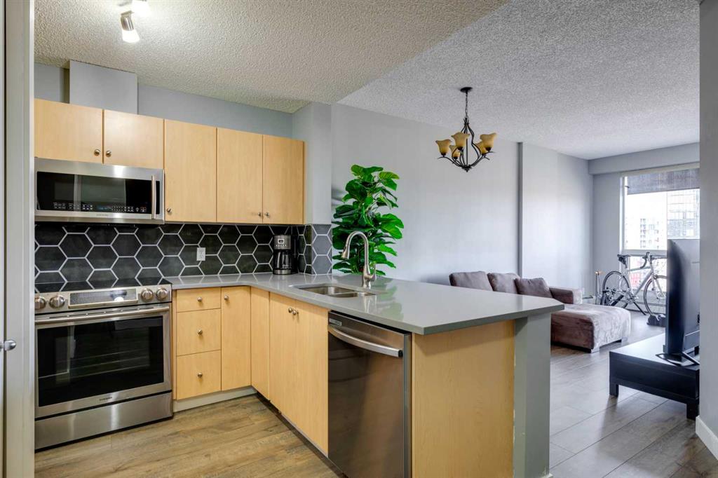 Discover the perfect blend of luxury, comfort, and convenience in this 9th-floor unit, with west facing panoramic views of Calgary’s vibrant cityscape. With two spacious bedrooms and a thoughtfully designed open floor plan, this light-filled condo feels both expansive and intimate. Floor-to-ceiling windows flood the space with natural light, creating an inviting atmosphere where you’ll love to unwind. Whether you’re sipping your morning coffee or hosting friends, your balcony offers the perfect outdoor escape where you will enjoy the sunset every evening. The sleek, modern kitchen features granite countertops, stylish maple cabinetry and stainless steel appliances. From the upgraded flooring to the convenience of in-suite laundry, every detail in this home has been crafted to elevate your living experience. Your titled heated underground parking spot ensures security and convenience, so parking is never a hassle CONDO FEES INCLUDE HEAT, WATER AND ELECTRICITY. Vantage Pointe offers access to top-notch amenities that enhance your lifestyle. Equipped with four elevators, a fitness center, concierge services, secure bike storage and ample visitor parking. You’re steps from the C-Train, Co-op Marketplace, 17th Avenue’s restaurants and nightlife, trendy boutiques, and tranquil river pathways. Urban living doesn’t get better than this. Schedule your private viewing today!