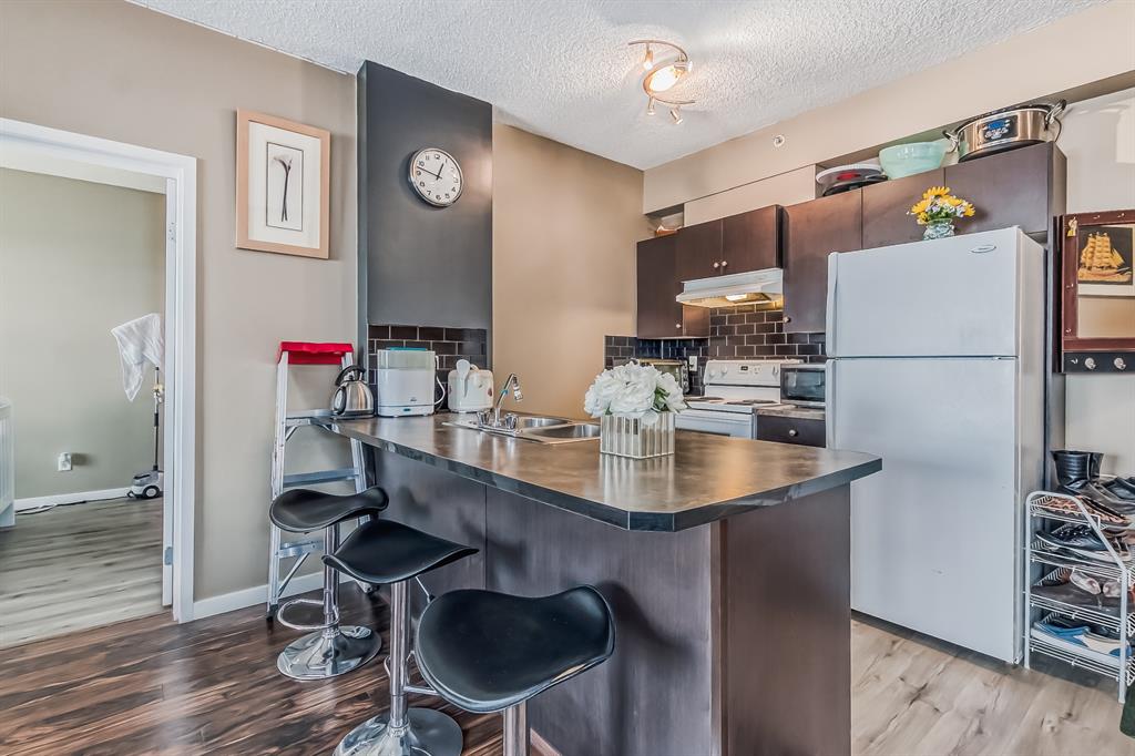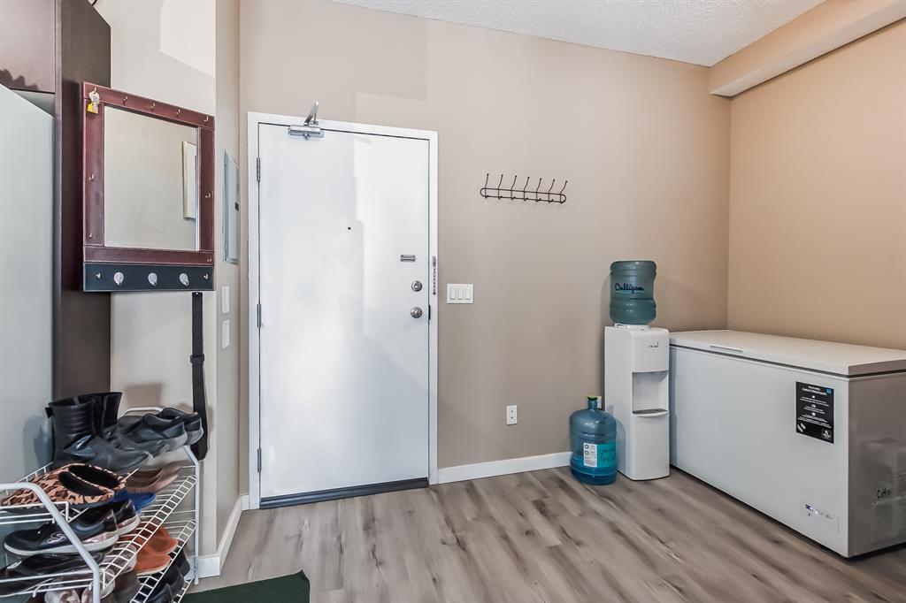 Public Remarks TOP FLOOR AND CORNER UNIT | 2 BEDS 2 BATHS | UNDERGROUND PARKING | CONDO FEE COVER ALL UTILITIES | Amazing chance to get into real estate market in Calgary with this top floor and end unit with stunning unobstructed mountain views. Open concept with large entry space which you can use for a den or office room. Two spacious bedrooms with a master with 4 piece en-suite along with a walkthrough closet. Upgrade engineered flooring and vinyl plank. Convenient underground parking of your own stall and lots of visitor parking. This Building is very well-managed, safe and quite. Condo fee covers almost all utilities. It's great place for a small family.
