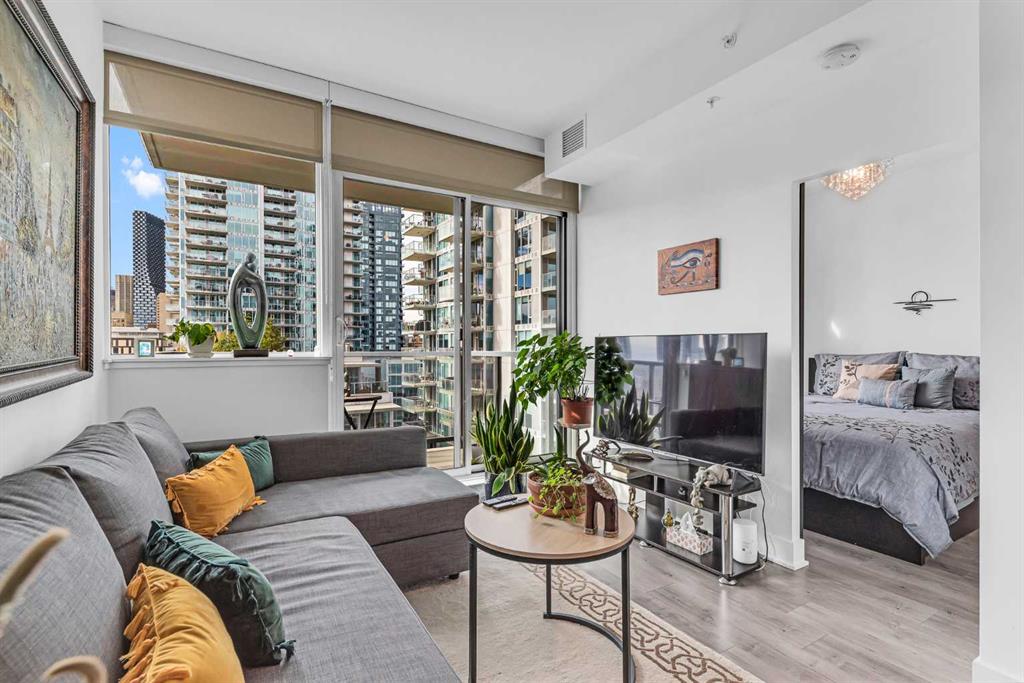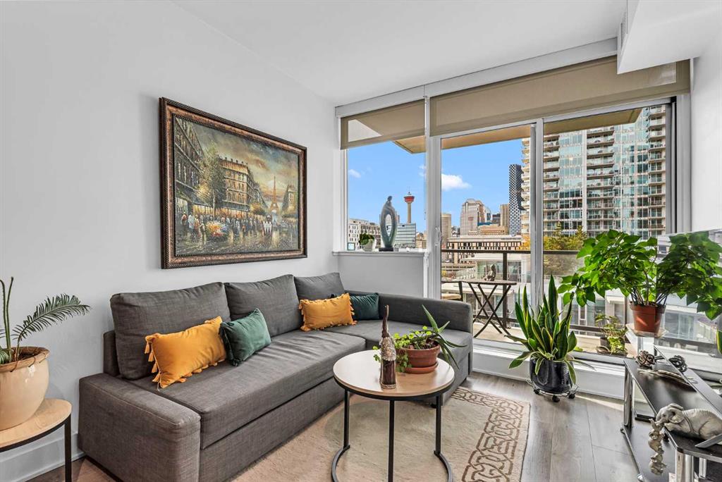 Discover urban living at its finest in this stunning 1-bedroom condo located in the heart of downtown East Village. With breathtaking west-facing views, this unit is designed for both comfort and style. Enjoy the elegance of luxury vinyl plank flooring throughout, sleek quartz countertops, and stainless steel appliances in the modern kitchen. The spacious primary bedroom features dual closets for ample storage, while the private balcony offers a peaceful retreat with gorgeous sunset views. Convenience is at your fingertips with in-suite laundry, a titled underground parking stall, and an assigned storage locker. The building boasts top-tier amenities, including a rooftop patio, fitness center, party/games room, and concierge services. You'll be immersed in the vibrant East Village lifestyle, steps away from the Bow River pathways, trendy shops, cafes, and parks. Whether strolling along the river or enjoying a cozy night in, this property delivers the perfect balance of luxury and location. Contact me today for a viewing—this opportunity won't last long.