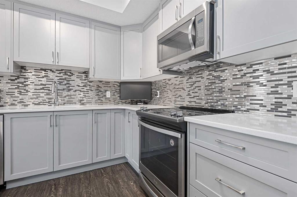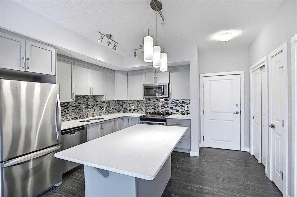 Move into this beautiful condo - The Mark 101 – by quality builder - Shane Homes in the popular family community of Sage Hill! Enjoy trendy life style living in this modern, bright & stylish upgraded unit in its mint condition with titled underground parking and assigned storage locker in parkade. This beautiful unit offers 9ft ceilings, luxury vinyl flooring, upgraded tiles in both bathrooms. Enjoy cooking with an open kitchen which offers granite counters; soft-close drawers, upgraded mosaic backsplash tiles, a large centre island; and stainless steel appliances. For that added privacy, the 2 bedrooms are located on opposite sides of the condo separated by the spacious living room with floor to ceiling windows for extra lights and a door to a good size balcony where you can enjoy BBQ or coffee with your patio furniture; the master has double closets with built in organizers & an ensuite with oversized walk-in shower. The 2nd full bath also has a large adjoining laundry/storage room complete with wire shelving & Whirlpool washer & dryer. Other features include granite counters & tile floors in both bathrooms. Condo fees include heat & water-sewer, pet-friendly on board approval. The Mark 101 features solid sound dampening construction to minimize sound, lowE windows, Hardie Board siding, secure keyless entry & security cameras along with ramp access to building; residents' bike storage & visitor parking. This well sought after location is just minutes to Creekside & Beacon Hill shopping, Walmart, T N T Supermarket, Tim Hortons, Shopper Drug Mart, Day Care, etc. plus easy access to Stoney, Beddington & Shaganappi Trails. Book your private viewing today!