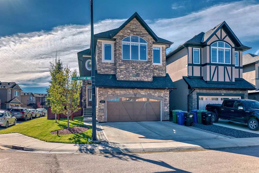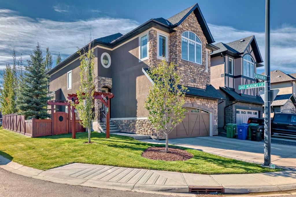 Welcome to the house of your dreams!!! This beautiful and elegant house located on a big corner lot in the quiet and relaxing subdivision of Sage Hills, features a stunning open ceiling main entrance with ceramic tile floor and a built-in closet with shoes and coats organizers. On the main floor, there's a spacious office with a built-in shelving unit and double doors. Hardwood floors extend from the office into the kitchen, nook, and living room, where another marvelous built-in unit was placed around the fireplace and accentuated with brick details. The kitchen features a big island with granite countertops and plenty of cabinetry, stainless steel appliances, and a very spacious pantry. The stairs leading to the second floor are beautifully crafted with metal and wood railings and have decorative step spotlights. On the second floor, there are three spacious bedrooms, a full bathroom, the laundry room, and a family room with plenty of natural light; the perfect spot in the house to relax and enjoy with the whole family. All closets in all bedrooms upstairs have built-in shelves and drawers and the primary room has an elegant ensuite with a jetted soaking tub for your relaxation. An additional 810.5 sqft of living space was created in the basement which has an independent entrance on the north side of the house. The basement features two additional rooms (one with a walk-in closet), a full bathroom, and an open space for entertaining and/or exercising. From the nook, there is access to the deck and the beautifully landscaped backyard where you will also find a shed for additional storage. The backyard and front garden are equipped with an automatic irrigation system for your convenience. In the fully insulated garage, you will find enough space for two vehicles and plenty of hangers to store some of your bikes and other sporting equipment. The house also has central vacuum, central air conditioning, and a central sound system on the main floor and bonus room. Do not miss this rare opportunity to own such an incredible house located in an amazing neighborhood with easy access to schools, parks, shopping and dining amenities, and just 20 mins away from Calgary International Airport!!!!