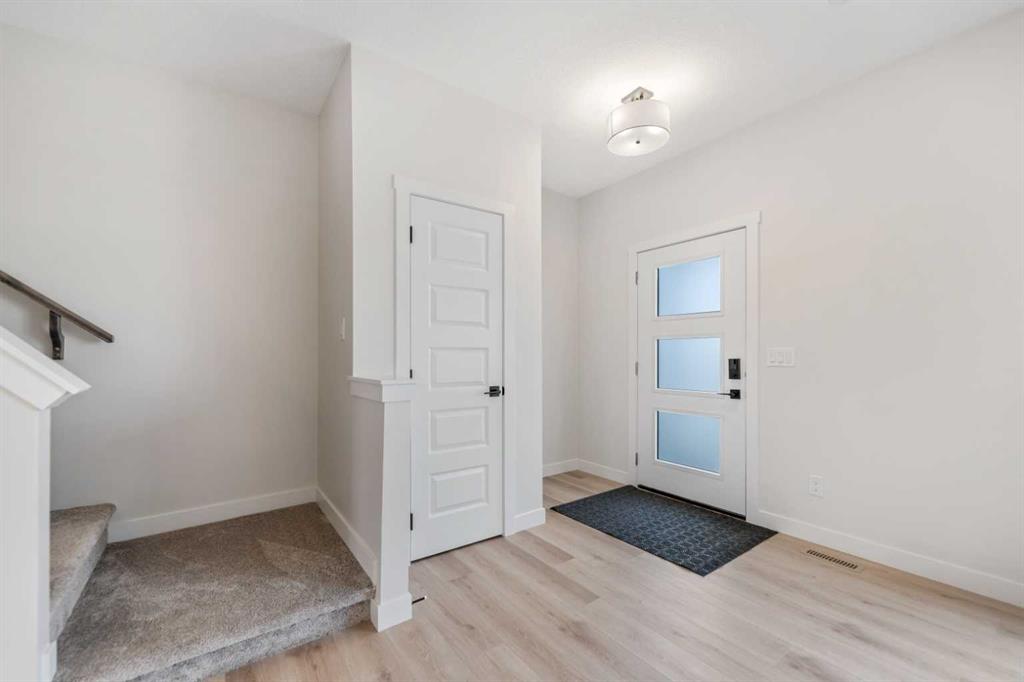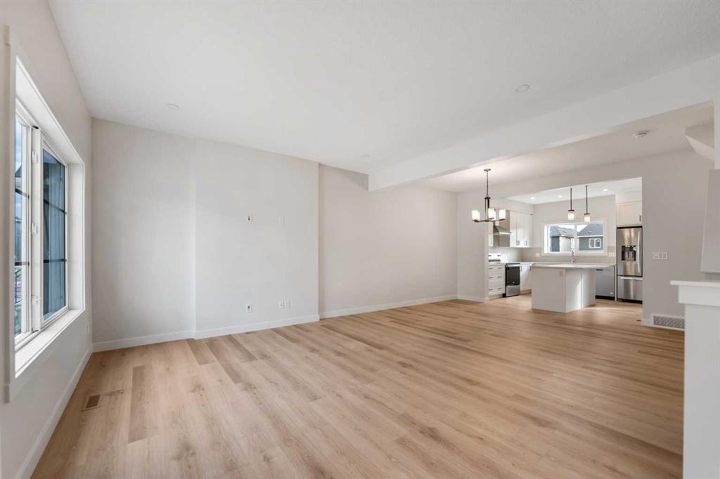 Welcome to Your Dream Home in the Vibrant Bayview Community of Airdrie! This stunning, brand-new, never-lived-in 3-bedroom detached home spans 1,480 sq. ft. and is designed with modern living in mind. As you step inside, you're welcomed by a bright, open-concept layout that features a spacious living area with a large front window, allowing natural light to flood the room. The 9 ft knockdown ceilings, recessed pot lights, and luxury vinyl plank flooring throughout the main level create a fresh and contemporary atmosphere.At the heart of this home is the north-facing kitchen, equipped with high-end stainless steel appliances, including a built-in microwave, sleek stove, and hood fan. Full-height kitchen cabinets with risers offer ample storage, while quartz countertops and a large central island combine functionality with style. The adjacent dining area is ideal for family meals or entertaining guests, with easy access to the backyard through the rear entrance.A beautiful wide staircase, carpeted for comfort, leads you to the upper level, where you’ll find three generously sized bedrooms. The master suite is your personal retreat, complete with a luxurious 4-piece ensuite that includes a walk-in shower and quartz-topped vanity. The two additional bedrooms are well-sized, each with large windows and ample closet space, and share a full 3-piece bathroom. An upper-level laundry room adds both convenience and efficiency to your daily routine.The unfinished sunshine basement offers 653 sq. ft. of additional potential living space. It comes pre-planned with a layout for two additional bedrooms and a rough-in for a bathroom, making future development easy and cost-effective, allowing you to expand as your needs grow.The exterior of the home includes a double car concrete pad, providing the foundation for a future detached garage. The laned design ensures easy access to your backyard without the hassle of backing onto a street. The backyard is a private space with plenty of room for outdoor activities and gardening, perfect for creating your own oasis.This home is ideally located just 10 minutes from CrossIron Mall and 15 minutes from Calgary International Airport, making it perfect for commuters. The Bayview community is known for its beautiful parks, playgrounds, and family-friendly atmosphere. With easy access to shopping, schools, and major highways, this home offers the ideal blend of convenience and community living.As a special bonus, the builder is offering a complimentary Smart Home Package. This package includes a smart thermostat for efficient climate control, a video doorbell, smart locks, all of which can be controlled remotely for added convenience and security.This house is vacant and ready for quick possession—don’t miss out on the opportunity to make this 1,480 sq. ft. gem your new home! Schedule a viewing today!