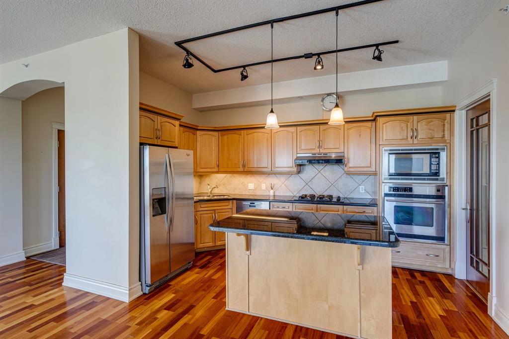 Public Remarks Incredible inner-city living in one of Calgary's trendiest communities, Kensington! Stroll the river pathways just outside your door and enjoy some of Calgary's best restaurants and locally owned businesses right in your neighbourhood! The 5th and 6th floors of Kensington Mews were built as the executive levels in this building with fewer units per floor, solid-core doors, 10' ceilings, air conditioning and luxury kitchens including wall oven, gas cooktop, thick granite counters and walk-in pantry/laundry room. The layout of this 2-BED + DEN unit is wide and spacious with large west-facing windows, not long and narrow - so it feels much more like a house than an apartment. If you love to entertain, you will be proud to show off the wow-factor of this sub-penthouse! The west views overlooking the Rocky Mountains and charming Hillhurst show off the changing seasons and the layout allows you to bring your interior design ideas to life with full-sized furniture! This is a home that can accommodate a growing family or downsizers alike - anyone looking for low-maintenance living in a prime urban location for a great price! The flexible spaces found here can suit various needs, such as formal dining, home office, grand piano, yoga lounge, library or even close off the den or dining room to make a 3rd bedroom! The living room has a gas fireplace and can accommodate any size sectional! Primary bedroom is oversized with views of the treed neighbourhood, room for a full bedroom set, walk-in closet with wood shelving and full ensuite with jetted tub, bidet and stall shower. Second bedroom is nicely sized with big windows and its own walk-in closet. Rare for condo living - this unit includes TWO titled parking stalls and a storage locker! This quiet CONCRETE building also offers visitor parking, secure bike storage room and optional gym access ($200/year). Pet-friendly with no weight restriction! The location of this building cannot be overstated with a 96 walk score and 99 bike score! Kensington offers groceries, cafes, restaurants, local movie theatre, boutique shopping as well as beautiful tree-lined residential streets and a quiet feel. Getting into downtown or west to the mountains is a breeze from this spot. A lifestyle of convenience and comfort await in this very special home, ready for its next chapter! Check out our virtual tour to get a true feel for the space and then book your showing today!