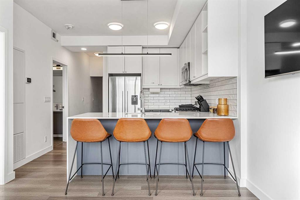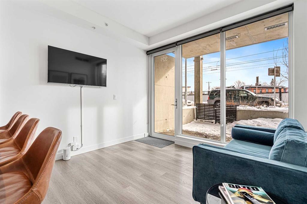 Public Remarks AirBNB allowed | Discover a rare opportunity in Calgary's vibrant Sunnyside/Kensington neighborhood with this unique LIVE-WORK townhouse-like unit at The Annex. With its separate main floor private entrance. Developer-size 640 sq.ft. layout, this 2-bedroom, 1-bathroom with spacious laundry room condominium is the first of its kind in this building to become available for sale, combining luxury and sustainability in one outstanding package. Commute less and get out and enjoy the city more! Views of the city skyline & the river. Steps from the river & the heart of downtown Calgary. Quickly get onto Calgary's major roadways, 14th Street NW and Memorial Dr. Step inside to find an inviting open kitchen with high-end, full-size stainless steel appliances, complemented by floor-to-ceiling windows that flood the space with natural light. The generous layout includes ample storage and a spacious laundry room for added storage. One of the standout features is the expansive outdoor front patio—one of the largest in the building—perfect for entertaining or working from home, complete with a gas hook-up for your BBQ. Secure heated parking is a breeze with one of the largest titled underground stalls, and the building boasts a prime transit score for easy access to public transportation. Enjoy a lifestyle filled with nearby amenities, including top-rated restaurants, shops, parks, and vibrant local markets. Just minutes from downtown Calgary and close to SAIT and the Foothills Hospital, this unit truly offers the best of urban living. With Kensington's eclectic mix of shops, services, and the Sunnyside CTrain station right at your doorstep, The Annex promises a lifestyle rich in convenience and community. This is not only a beautiful home but also an exceptional investment opportunity with flexible options for AIRBNB and short-term rentals (one of the rare buildings that still allow this). Recognized for its environmental sustainability, it’s the first LEED v4 Gold Multi-family Mid-rise building in Calgary, featuring energy-efficient lighting and water-saving fixtures. Building amenities include a stunning rooftop patio with communal BBQ facilities, fire pits, and breathtaking 360 degree skyline views, along with a dog park & dog run & pet-friendly spaces. Bike storage. Titled parking stall. With a proven rental history and innovative green technologies, The Annex is the perfect place for investors and homeowners alike. Don’t miss your chance to experience modern living and investment potential in Calgary's top-rated community!