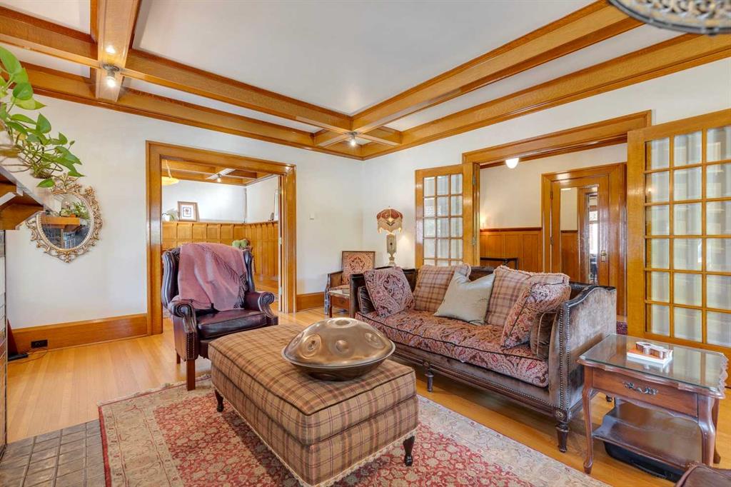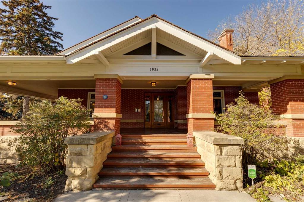 Experience Timeless Elegance in the Heart of Cliff Bungalow. Treend Residence is a stunning embodiment of Prairie-style architecture inspired by the legendary Frank Lloyd Wright. Built in 1922 and meticulously preserved, this sprawling bungalow blends historic charm with modern comforts, offering an unparalleled living experience in one of Calgary's most sought-after neighborhoods. From the moment you arrive, you'll be captivated by the home's low-pitched hip roof, broad overhanging eaves, and inviting wrap-around verandah supported by massive brick/sandstone pillars. The exterior showcases stretcher bond brick veneer over a sandstone foundation, exuding a timeless elegance that's truly one-of-a-kind. Step inside to discover an open floor plan designed for today's lifestyle. The vestibule entry welcomes you into a generous central hallway adorned with rich oak wainscoting and flooring. The spacious living areas feature exquisite wood paneling and a stunning fireplace embellished with salt-glazed tiles and marble inlay—perfect for cozy evenings at home. The spacious dining room opens to a fabulous sun room enchanted with leaded glass windows. A modern kitchen boasts high end appliances and an original breakfast nook, offering a charming space for morning coffee. The home features three bedrooms plus a study on the main floor. The primary suite boasts a walk-in closet and luxurious spa-like ensuite bath. Throughout the home, decorative beveled glass windows bath each room in warm, natural light, creating an inviting and serene atmosphere. The lower level provides a fourth bedroom, large recreation rm, laundry, storage and wine rm, plus access to the underdrive garage. The home features updated mechanical and efficient hot water heating. Set on a beautifully landscaped lot, the property includes mature trees a perennial garden and a classic wrought iron fence that enhances its curb appeal. The expansive verandah provides the perfect setting for outdoor entertaining or quiet relaxation after a long day and the private patio features a modern brick fireplace perfect for entertaining.Located in the vibrant Cliff Bungalow community, you're just steps away from trendy boutiques, gourmet restaurants, and river pathways. Enjoy the convenience of urban living while residing in a peaceful, historic setting. This home is perfect for anyone who appreciate fine architecture and desire a unique living space that stands out from the ordinary. With its blend of historic features and modern amenities, it's an ideal setting for hosting friends or unwinding after a busy day in the city. Embrace a lifestyle of sophistication and comfort in a home that truly has it all. This rare home is a piece of Calgary's history waiting to be part of your future. Call now to arrange your personal tour of this exceptional property.