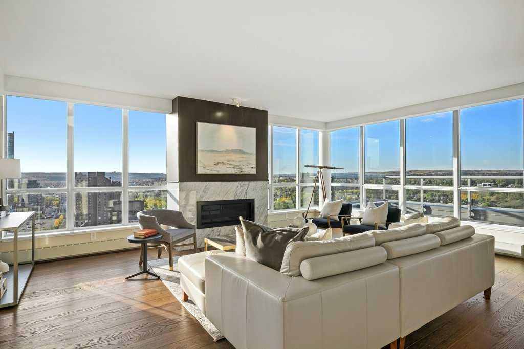 Elevate yourself into the Penthouse - an executive bungalow in the sky. This is more than a home; it’s a lifestyle statement. Imagine a stunning top floor condo perched 250 feet atop a sleek high-rise, offering panoramic views of the river and skyline. Occupying nearly 2,100 of interior square footage, this 3 bedroom + office + 3.5 bathroom layout is designed to provide the best of both worlds: entertainment and seclusion. Car enthusiast? Then you will certainly appreciate the [3] underground parking stalls that await your automobile collection. Upon entering, you're greeted by an expansive open-concept living space drenched in natural light from floor-to-ceiling windows that frame our breathtaking cityscape. Relax around the beautiful marble surround fireplace after a long day as the sun sets in the background. Migrate over to the modern kitchen that consists of a wonderful blend of integrated Miele + Wolf appliances, quartz counters, contemporary cabinetry, wine fridge, industrial sized sink and several viewpoints of the river. Step out to the 560 sqft of exterior terrace space and picture late-night cocktails under the stars, entertaining colleagues in style and waking up to the city at your feet. The office provides a space to up productivity at home while offering solitude with the sliding doors for those important calls. Down the hall you will find the resting quarters - smartly positioned away from the action. Each of the 3 bedrooms all come with their own private ensuite bathrooms with the primary taking centre stage: breathtaking corner windows, ample space for a king bed, access to the rear patio, gigantic walk-in closet and spa inspired en-suite with heated flooring, dual vanities and separate tub + shower. Rounding out the interior perks are a fitting 2 piece guest bath along with a dedicated laundry room. Unwind in an existence that celebrates sophistication, privacy and the extraordinary. As mentioned, this purchase comes with 3 aligned parking stalls and an assigned storage locker. Don't miss out on the amenities in this complex: onsite concierge, owner's lounge with games room + full kitchen, fitness area, hot tub, theatre and car wash. A location steps to the office core, c-train, pathways, restaurants and all daily services. Your opportunity to live alongside the soaring birds and amongst the banks of the Bow river.