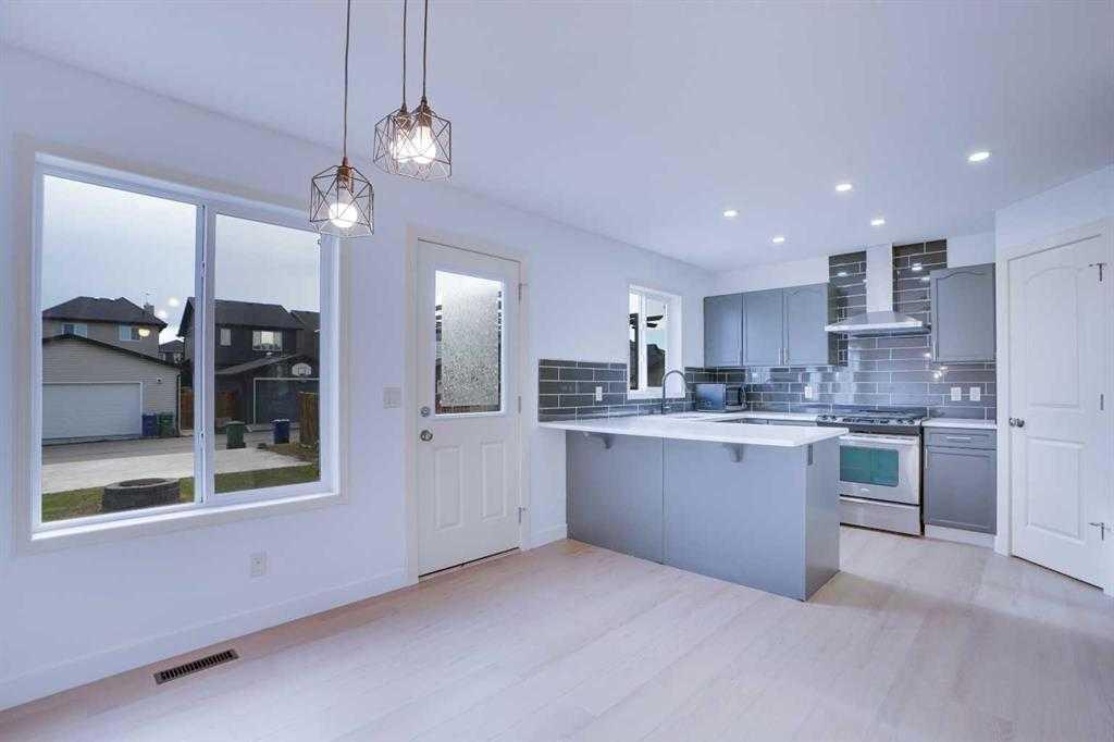 Welcome to this beautifully renovated and affordable single-family home featuring 3 bedrooms and 1.5 baths. As you walk through, you'll immediately notice the newly installed vinyl plank flooring and fresh paint, creating an expansive and inviting atmosphere. The living area boasts large windows that flood the space with natural light, complemented by ample recessed lighting throughout, ensuring the home is always bright and welcoming. The main floor includes a spacious two-piece bathroom equipped with a convenient laundry area. The kitchen and dining area feature sleek quartz countertops and glossy subway tile backsplash, providing a striking contrast to the dark cabinets. Upstairs, you'll find a generously sized master bedroom with a Jack and Jill 4-piece bathroom. The two additional bedrooms offer ample space, making this home perfect for a family. Located in a prime area, this property is just minutes away from all amenities, grocery stores, and restaurants. Schedule a showing with your favorite realtor today and see this stunning home for yourself!