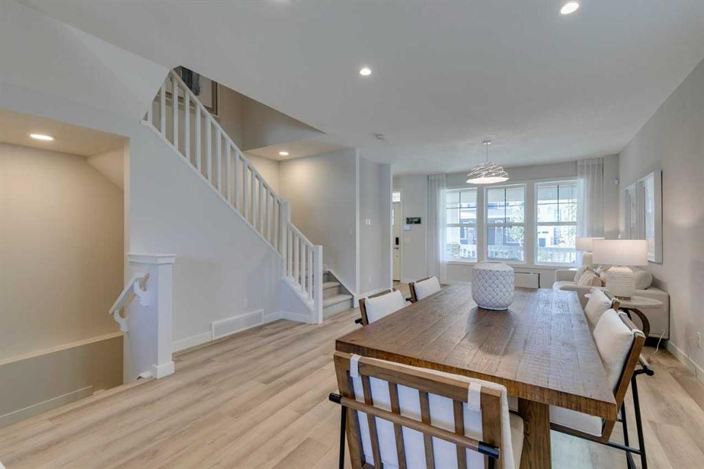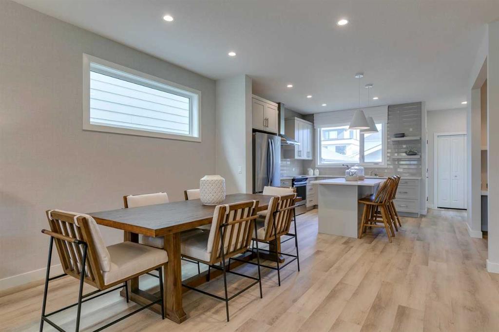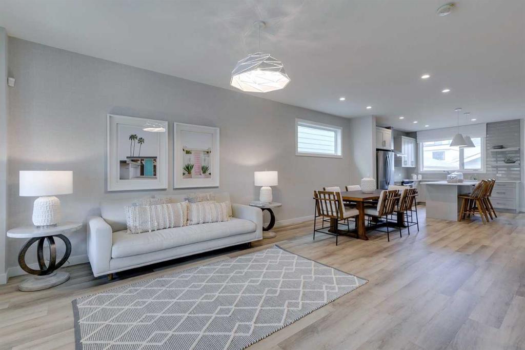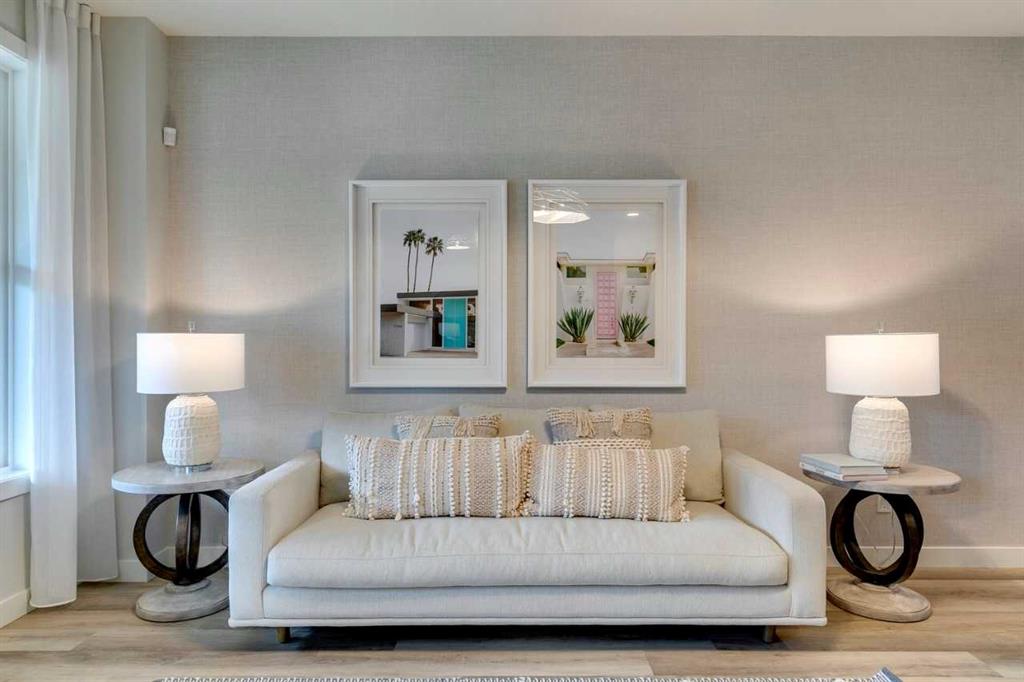 Discover 32 Treeline Manor SW, a brand-new home in Alpine Park. The AMERY model offers 1,656 sq ft of living space with a rear double detached garage. The craftsman-style exterior features Hardie board siding and a oversized front porch. Inside, the open concept design includes LVP flooring on the main floor and quartz countertops throughout. The kitchen shines with white HDF cabinetry, soft-close features, upgraded stainless steel appliances, a chimney hood fan, a large island, and a window over the sink. An integrated home office and walk-in pantry are conveniently located off the kitchen. The great room at the front of the home has large windows facing the street. Alpine Park is an ambitious next-generation community in Calgary’s new west, known for its new urbanist principles and spectacular parks. Photos are representative.