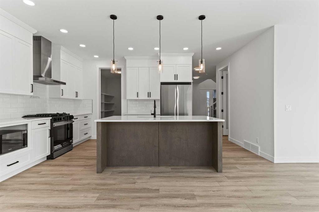 Welcome to 203 Kinniburgh Loop, a beautifully designed 4-bedroom, 3-bathroom home on an oversized pie lot. This home is built by the renowned Golden Homes, a five-star builder celebrated for exceptional quality and craftsmanship. This stunning property offers a perfect blend of modern time-less pallet and thoughtful design features for comfortable living in one of Chestermere’s most sought-after neighborhoods. The home boasts an impressive open-to-below layout that creates a grand, airy feel as you enter the home. A main floor bedroom and full bathroom provide convenience and flexibility, perfect for hosting guests or accommodating multi-generational living. The triple car garage offers plenty of space for vehicles and storage, with the added convenience of a side entrance. Inside, the home features 9-foot ceilings on both the main floor and in the basement, enhancing the spacious feel. The kitchen is outfitted with high-end cabinetry that extends to the ceiling, gas range, spindle railings and a Gas Fireplace. This home also features triple-pane windows, built-in MDF shelves throughout, separate entrance, Quartz counters and more. The luxurious master suite offers a serene retreat, complete with a free-standing tub, double vanity closed off toilet and glass free standing shower offers a retreat for all who enter. Designed with energy efficiency and future readiness in mind, the home comes with a solar panel rough-in and gas lines for the BBQ and garage heater locations, making outdoor entertaining and future upgrades effortless. With its thoughtful design and Golden Homes' attention to detail, 203 Kinniburgh Loop offers everything a family could want.