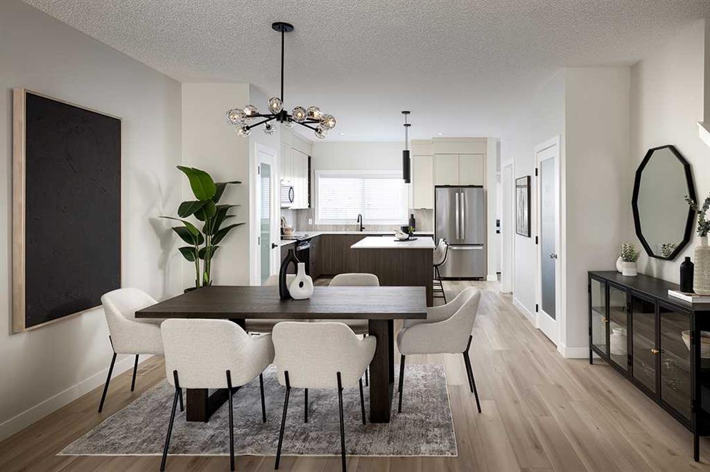 Legacy - 35 Legacy Reach Court SE: UNDER CONSTRUCTION OPPORTUNITY. Welcome to this Sienna model home built by Shane Homes featuring 1,559 sq ft of development, 3 bedrooms, and 2.5 bathrooms. The spacious main floor has luxury vinyl plank throughout; a central kitchen with an island with ample seating, pantry shelves, and stainless steel appliances including an electric range, refrigerator, dishwasher, a chimney hood fan, and microwave; a separate dining area, and living room. Additional features to the main floor include a 2 pc powder room with pedestal sink, front entry with coat closet, mudroom with closet and bench. The second floor features a primary bedroom with a walk-in closet and 3 pc ensuite; 2 additional bedrooms - one bedroom with a walk-in closet; a 4 pc main bathroom, a laundry closet with side-by-side washer/dryer and shelf for storage; and a linen closet. The basement remains unspoiled with upgrades including a separate rear walk-up access, 9ft basement foundation, laundry rough-in, wet bar rough-in, bathroom rough-in, and a gas line for an additional furnace to make future development easy. The backyard has a gravel parking pad providing parking for 2 vehicles. This home is located in the community of Legacy, close to parks, pathways, shops, schools, and a short commute to Macleod Trail, Stoney Trail, and Deerfoot Trail (QE II). Call for more info! *Photos from existing Shane Homes showhomes of the same model. Selections, upgrades, and colors may vary.*