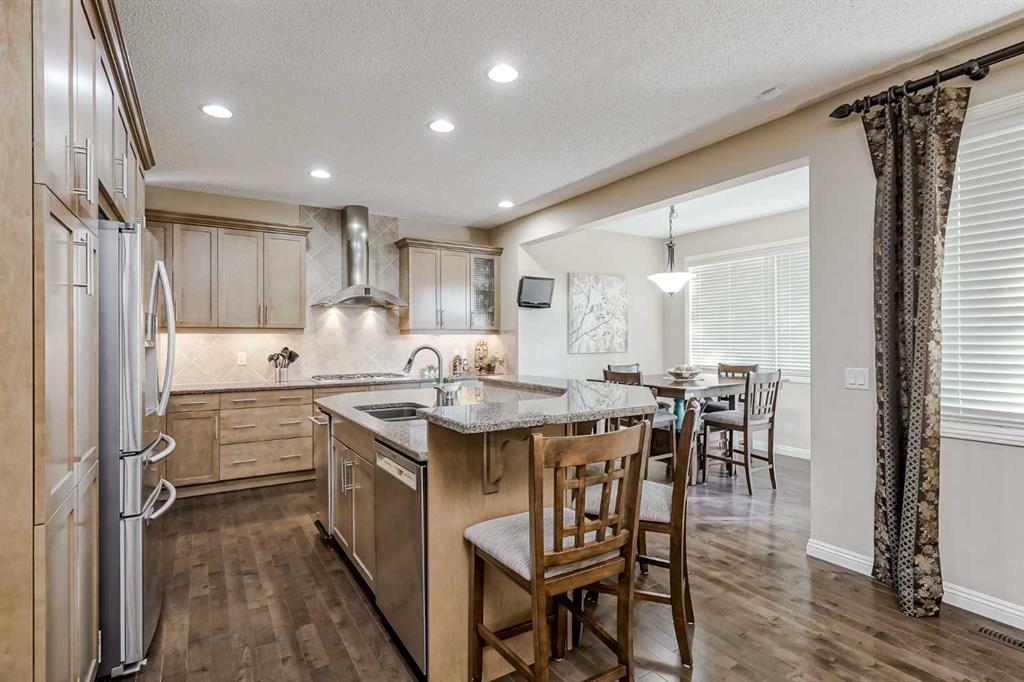 Welcome to this stunning, upgraded 5-bedroom home, perfectly situated just a stone's throw from the scenic Cranston Ridge. With over 3,500 sq/ft of beautifully designed living space and a show-stopping backyard, this home is an entertainer's paradise! As you step inside, you'll be greeted by a grand foyer with gleaming hardwood floors that flow into a spacious, chef-inspired kitchen. This space features a large island with gleaming granite countertops, a built-in oven, a high-performance gas cooktop, a sleek range hood, and an expansive pantry. The elegant maple wood cabinetry adds warmth and sophistication, offering ample storage while perfectly complementing the modern appliances. Whether it’s a quick family breakfast or a lavish holiday gathering, this kitchen is designed to impress and function flawlessly. The living room flows effortlessly into the kitchen and dining areas, inviting cozy evenings with its gas fireplace and stunning rock façade. It creates an ideal space for relaxed family time or entertaining guests in style. This level is complete with your own personal office space and a large formal dining room. Upstairs, you'll find a HUGE bonus room—ideal for a play area or workout space —along with a conveniently located laundry area and 3 spacious bedrooms. The primary bedroom is a true sanctuary, offering an expansive layout with rich hardwood floors. This generously sized retreat provides plenty of space for a king-sized bed, a cozy reading nook, or even a sitting area to unwind at the end of the day. The attached 5-piece ensuite is nothing short of a personal spa. Indulge in the deep soaker tub for long, relaxing baths, or refresh in the glass-enclosed, stand-up shower. The dual vanity with sleek countertops ensures plenty of space for two, offering both practicality and luxury. The fully finished basement is an entertainer's dream. Whether it's movie nights in the theatre room, game nights in the large rec area, or serving drinks at the custom bar with a moveable island, this space is designed for fun. Plus, there are 2 additional bedrooms and a full bathroom, perfect for guests or growing families. And then, there's the backyard... This is where the magic happens! Professionally landscaped with no expense spared, this outdoor oasis features a built-in bar, serene water fountains, lush trees for privacy, and plenty of extra storage. Whether you're hosting summer barbecues or quiet family evenings under the stars, this space truly has it all. This home offers not just a place to live, but a lifestyle centered around family, friends, and unforgettable gatherings. Don’t miss out on this rare gem in Cranston!
