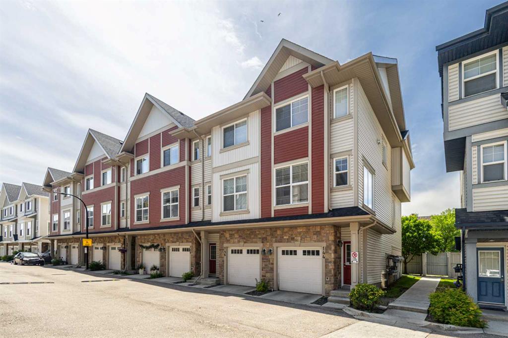Beautiful townhome with low condo fees! Welcome to this stunning townhome in the highly desirable New Brighton community! Boasting over 1,269 sqft of living space, this home features 3 large bedrooms, high end finishes, lovely living spaces and many conveniences including an attached garage (fits x2 cars)! As you step inside, you have immediate access to your garage, making winter days a breeze! Heading up the stairs, you are welcomed into the open floor plan main level flooded with natural light and complemented by luxury hardwood flooring & neutral paint tones. The living & dining rooms are expansive and well-kept with plenty of space for hosting family and friends. At the rear of the main level, the modern kitchen features rich dark brown cabinetry with silver hardware, grey tile backsplash, granite countertops (w/breakfast bar option) and a great ss appliance package including fridge with top freezer, OTR microwave, built-in dishwasher & electric stove. Nicely finishing off the main level you have extra storage space and a 2pc guest bathroom. Upstairs, 3 spacious bedrooms await finished with plush carpet flooring along with a 3pc ensuite bathroom for the master and a shared 4pc bathroom with tub/shower combo! Complete with stacked washer/dryer, this home has it all! The exterior features a private rear patio, perfect for summer BBQs! Located in a vibrant community with excellent schools, shopping amenities (2 mins to the plaza with Walmart Supercenter, Staples, CO OP grocery & various restaurants), and just a short 20-minute drive to downtown Calgary, this home offers both comfort and convenience. Don't miss out and come view in person today!