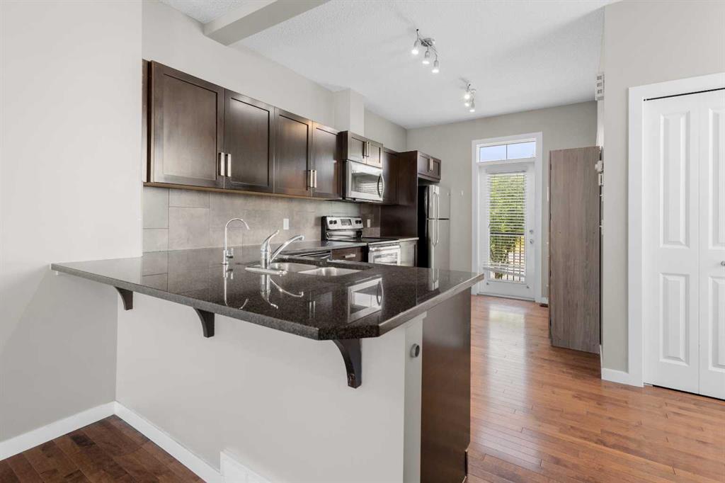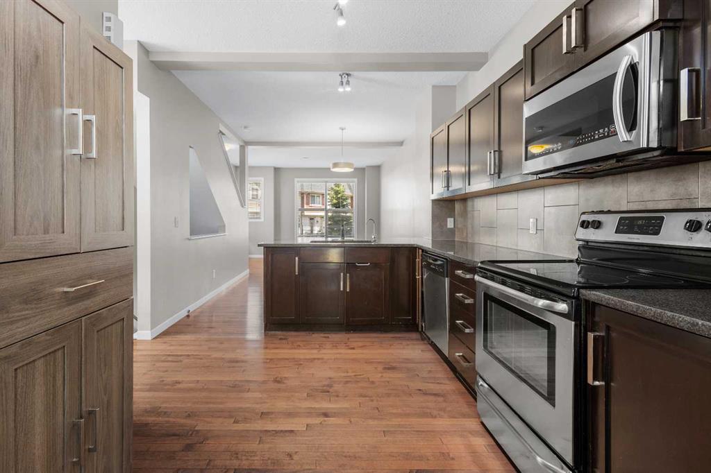 Public Remarks Beautiful townhome with low condo fees! Welcome to this stunning townhome in the highly desirable New Brighton community! Boasting over 1,269 sqft of living space, this home features 3 large bedrooms, high end finishes, lovely living spaces and many conveniences including an attached garage (fits x2 cars)! As you step inside, you have immediate access to your garage, making winter days a breeze! Heading up the stairs, you are welcomed into the open floor plan main level flooded with natural light and complemented by luxury hardwood flooring & neutral paint tones. The living & dining rooms are expansive and well-kept with plenty of space for hosting family and friends. At the rear of the main level, the modern kitchen features rich dark brown cabinetry with silver hardware, grey tile backsplash, granite countertops (w/breakfast bar option) and a great ss appliance package including fridge with top freezer, OTR microwave, built-in dishwasher & electric stove. Nicely finishing off the main level you have extra storage space and a 2pc guest bathroom. Upstairs, 3 spacious bedrooms await finished with plush carpet flooring along with a 3pc ensuite bathroom for the master and a shared 4pc bathroom with tub/shower combo! Complete with stacked washer/dryer, this home has it all! The exterior features a private rear patio, perfect for summer BBQs! Located in a vibrant community with excellent schools, shopping amenities (2 mins to the plaza with Walmart Supercenter, Staples, CO OP grocery & various restaurants), and just a short 20-minute drive to downtown Calgary, this home offers both comfort and convenience. Don't miss out and come view in person today!