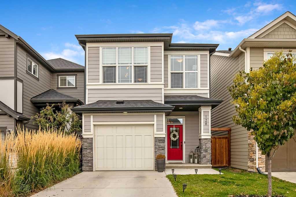 Located on a quiet street in Cranston's Riverstone, this stylish home has been lovingly maintained by original owners. With nearly 1800 sq ft of beautifully designed living spaces, central air-conditioning, front garage and a 130ft deep lot, this property is impressive. The main floor offers a spacious foyer (complete with closet and 2-pce bathroom), large open plan kitchen (with extra large island & cabinetry extending to the ceiling), dining area, family room (with brick-faced electric fireplace) and a conveniently placed built-in desk area. The upper level has been thoughtfully designed with a roomy, bright bonus room and laundry room separated from the 3 bedrooms. The primary bedroom is completed by a walk-in closet and luxurious 5pce ensuite featuring dual sinks, separate shower and soaker tub. The unfinished basement has lots of potential with loads of space for development. The west facing backyard has a deck with gas bbq hookup and a private lower patio. The location of this beautiful home allows for easy access to the entrance/exit of the community while still being close walking paths, parks and playgrounds along the Bow River! A fantastic home in a fantastic location!