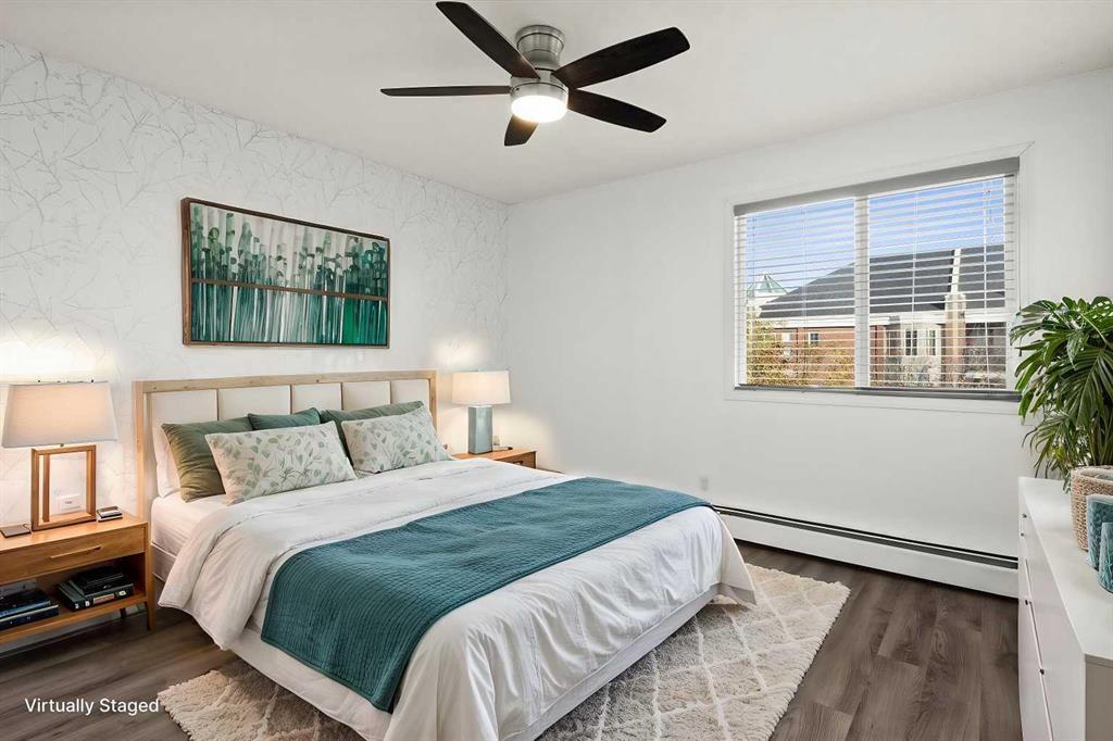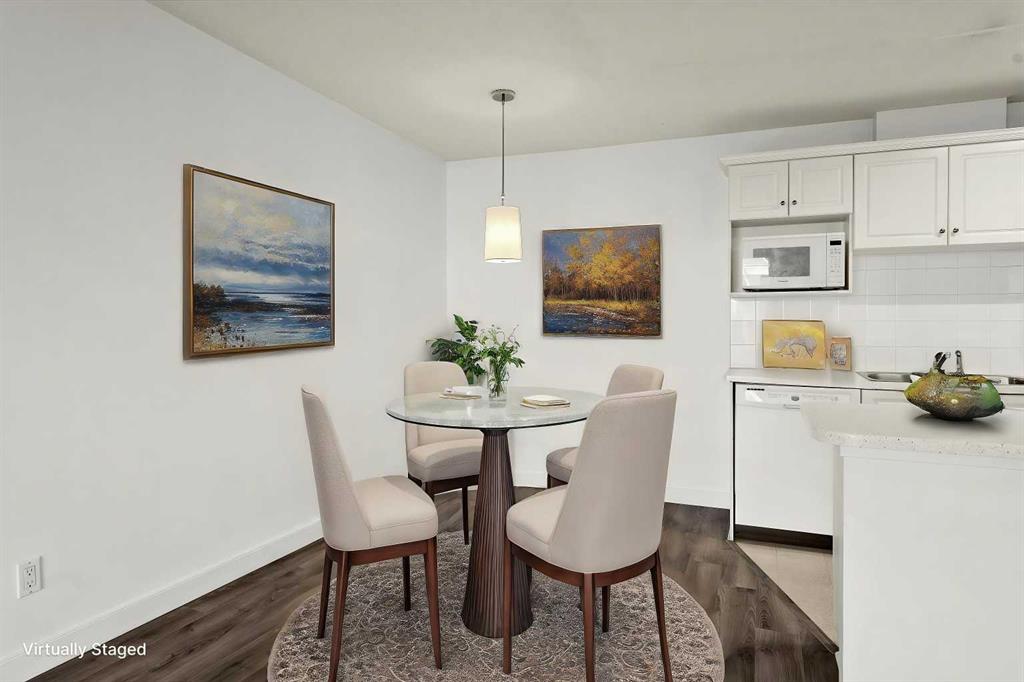 Public Remarks New Price! Fantastic value for this top floor street facing unit, vacant and "move in ready" located on quiet tree lined street in heart of Lower Mount Royal. Spacious bright one bedroom unit with covered deck featuring downtown views, secure covered parking and dedicated storage locker. Steps away from vibrant 17Ave, yet located on a quiet street with gorgeous brick architecture, upscale infills and century homes. Enter the updated lobby of this building and take the elevator up to your top floor unit. The condo is filled with light - featuring off white paint, neutral laminate flooring, new lighting fixtures, updated white kitchen. The spacious living room leads out to a covered balcony with downtown views, aluminum rails and duradek flooring! The contemporary kitchen looks on trend with white cabinetry, updated counters & newer appliances including the ceramic top convection oven. A dedicated dining space which could accommodate friends and family, as well as a buffet hutch for further storage. Generous primary suite with wallpaper backdrop on one wall - lots of room for a king bed or larger furniture pieces. Four piece bathroom and dedicated laundry/storage room featuring full sized front load washer/dryer. This unit also comes with covered secured parking spot plus storage locker on main level. Well managed building with with updated lobby and elevator. A short stroll to coffee shops, restaurants, shopping, parks and the river pathways. Smaller pets accepted. From nightlife to shopping to cafes to parks, this area checks all of the boxes and the unit is impeccable and move-in-ready. Perfect for an investor or for a buyer who wants a lock and leave lifestyle in the heart of one of Calgary's best communities.