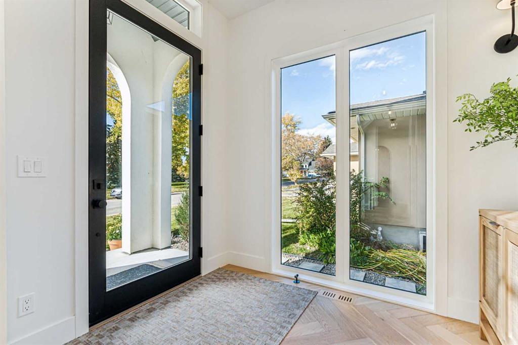 Step into this beautifully designed Trickle Creek custom home located on a quiet crescent across from a treed green space, in one of Calgary’s most desired neighborhoods - the community of Charleswood. With over 3,500 sq. ft. of total developed space, the main floor impresses with soaring 10-foot ceilings, setting a tone of spaciousness and grandeur. The living room features barrel arch with hidden storage, custom millwork accented with solid brass Armac Martin hardware, and an oversized 48-inch gas fireplace with a stone surround serving as the perfect centerpiece for cozy evenings. For the ultimate culinary experience the kitchen boasts a vaulted ceiling allowing for 8-foot counter-to-ceiling windows, maximizing natural light and outdoor sight lines. It is outfitted with a top-tier Jennair appliance package, including a 48-inch gas range, double ovens, and a microwave drawer. The Brizo polished nickel bridge faucet, pot filler, and a Kohler apron-front sink add both style and convenience. Open white oak shelving with solid brass Armac Martin brackets provide functionality and style. A separate butlers pantry and mudroom are located off the kitchen, featuring a Kohler apron-front prep sink, ample closed storage and custom built-in millwork. The second floor continues the feeling of openness with 15-foot vaulted ceilings in the hallway, master bedroom, and ensuite. The primary suite is designed for comfort and privacy, complete with sound insulation walk-in closet with custom millwork and a spa-like ensuite. Luxuriate in peace with ample space and thoughtful details that ensure rest and relaxation, including separate vanities, a soaker tub, and an oversized shower with dual shower heads and temperature control. The finished basement is perfect for entertaining or guest accommodations, with sound-insulated ceilings in the bedroom and in-floor heating in the bathroom for added comfort. The entire home is equipped with an integrated Sonos sound system, allowing you to enjoy music or media throughout the space. Outdoor living is a highlight on this property, with a rear deck featuring a pergola and a front deck complete with privacy wall. The oversized triple car garage includes a woodworking shop, while the outdoor gas fireplace with a custom concrete surround adds warmth to your evenings. Neighbouring trees provide a park-like setting with clear sightlines with no overhead power lines and convenient underground sprinkler system. Modern living is made easy with energy-efficient Lennox two-stage air conditioning, solid 8-foot core doors, and high-end finishes throughout. Whether hosting or relaxing, this home offers a timeless blend of luxurious touches and practical features, designed for those who appreciate craftsmanship and comfort.