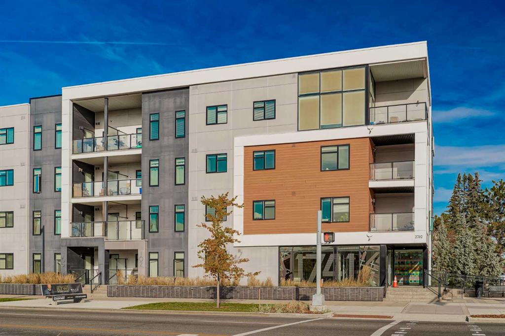 Welcome to this stunning 3rd-floor corner unit, where modern living meets an abundance of natural light through extra windows. The stylish kitchen features quartz countertops, stainless steel appliances, and two-tone cabinetry with a natural wood finish and high-gloss white uppers, all equipped with soft-close mechanisms. The open, bright layout boasts wide plank flooring and an inviting office nook, perfect for remote work. You'll also find a well-appointed 4-piece bathroom and convenient in-suite laundry. The spacious bedroom offers a serene retreat, while the titled heated underground parking and assigned storage unit add to the unit's practicality. Additional bicycle storage is available, catering to active lifestyles. Located just blocks from the C-train station, this property provides easy access to downtown Calgary’s vibrant amenities while being nestled in a quieter setting. Enjoy a quick drive to the heart of downtown, Shaganappi Golf Course, and to the Calgary Tennis Club. Whether you’re a professional seeking urban elegance or an investor looking for a lucrative income-generating property, this condo is the ideal blend of modern design, functionality, and a prime central location.
