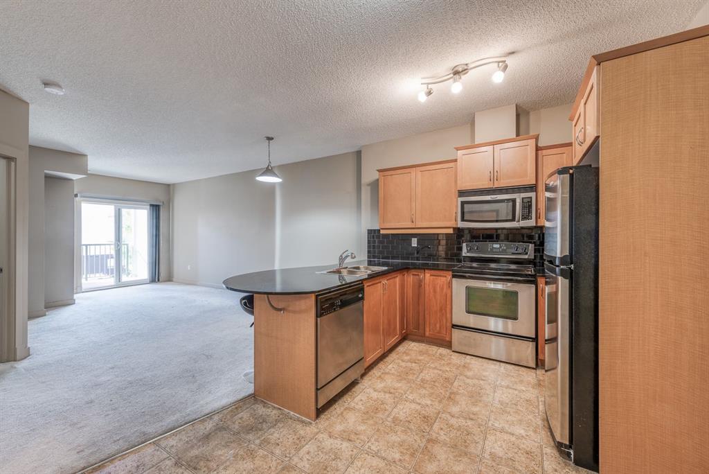 Contemporary TWO Bedroom condo in Calgary's coveted Lake Bonavista neighborhood. This stunning SOUTH-FACING gem features 9-foot ceilings and an expansive open floor plan highlighted by floor to ceiling windows that flood the space with natural light. The sleek kitchen boasts maple cabinets, stainless steel appliances, a stylish tile backsplash, and granite countertops. The inviting peninsula seamlessly connects the kitchen to the dining area and living room which leads to the covered balcony with gas hookup and picturesque south-facing views - perfect for entertaining! The spacious primary bedroom is a true retreat complete with a sitting area decorated with floor to ceiling window, ample room for a queen-sized bed, and his and hers walkthrough closets leading to the cheater 4pc ensuite. A second large bedroom and in-suite laundry/storage room complete this 750 Square Foot suite. Outside your unit, relish the convenience of TITLED UNDERGROUND HEATED PARKING and additional storage locker. Stay cool in the summer with full air-conditioning plus the condo fees include ALL UTILITIES (electricity, heat, water, gas) simplifying your bills. Concrete building construction ensures peace and privacy, with amenities including a state-of-the-art gym, fitness room, lounge/party rooms, two guest suites, and ample visitor parking. Steps away, Avenida Place Shopping Centre offers a variety of shops, services, and dining options including Tim Horton’s, Avenida Food Hall & Fresh Market, pharmacy, nail spa, and more! Enjoy easy access to Macleod Trail and Anderson Road, with Southcentre Mall and Anderson C-Train Station less than 5 minutes away. Don't miss this Lake Bonavista treasure – a perfect blend of luxury, convenience, and modern living.