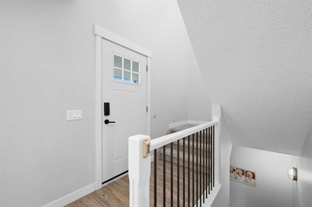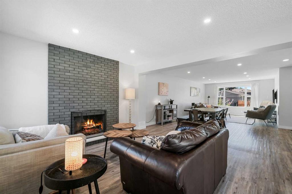 Prepare to be captivated by this modern 2-storey, 1,500 square foot home in Canyon Meadows the moment you arrive. Take note of the newer concrete walkway as you make your way to the front door. The foyer leads to an open floor plan that combines the family room, dining room and living room, which is filled with natural light from the large picture window. The family room boasts a brick-faced, wood-burning fireplace. Step into the updated kitchen and you’ll be impressed by the custom full-height soft close cabinets, sleek quartz countertops, trendy tile backsplash and luxury vinyl plank flooring that runs seamlessly throughout the main floor. Take note of the newer stainless steel appliances, including an electric stove, a built-in dishwasher, a French-door refrigerator and a microwave hood fan. Conveniently off the kitchen is direct access to the spacious deck, perfect for hosting family BBQs. Completing this floor is a half bath discretely tucked away featuring a vanity with quartz countertop and an under-mount sink. Located on the second floor, the primary bedroom features a cheater ensuite with a custom vanity including plenty of drawers, a quartz countertop, an under-mount sink and a stunning tiled jetted tub. Two other bedrooms, one with a walk-in closet, complete this floor. Newer upgrades to this home include interior doors, exterior doors, baseboards, door jams, hardware, Lux windows, contemporary light fixtures as well as recessed lighting. In addition, the electrical panel, high-efficiency hot water heater, high-efficiency furnace and all appliances are approximately 4 years old. The basement is a blank canvas, ready for your ideas. Outside is a 36’ X 18’ parking pad/patio with a shed, storage container, and dedicated dog run. Don’t miss this unique opportunity to own this truly remarkable home.