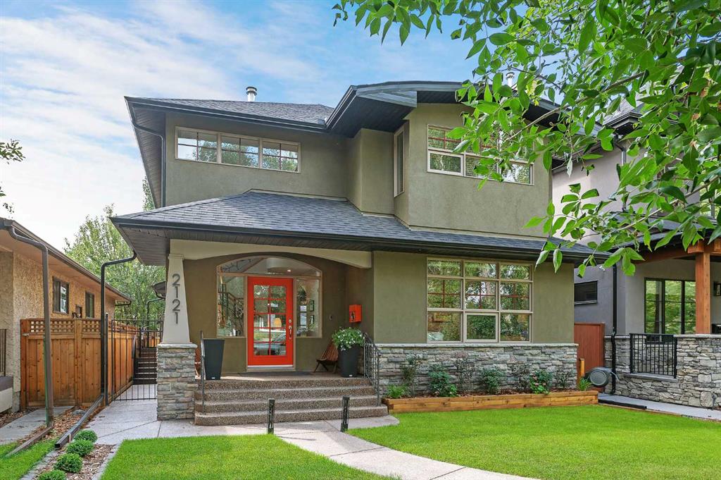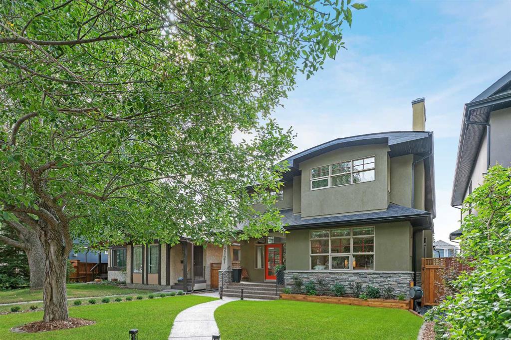 Beautifully upgraded 3+1 bedroom family home with sunny south back yard on a tree-lined street in West Hillhurst, offering over 3600 sq ft of developed living space. The main level presents exquisite solid Bird’s Eye maple hardwood floors, elegant crown moulding & is illuminated with recessed lights & posh light fixtures, showcasing a formal living room with custom floor to ceiling fireplace. An elegant formal dining room with Restoration Hardware rectangular chandelier has ample space to hold a large family gathering or dinner party. The kitchen is tastefully finished with granite counter tops, island/eating bar, Subway tile backsplash, top of the line appliances & bright breakfast nook with Louis Poulsen pendant light. Adjacent to the kitchen, the family room features a fireplace with distinctive tile surround, built-in cabinet & desk. Completing the main level is a convenient mudroom & 2 piece powder room with customized dog shower. Ascend the elegant staircase to the second level which hosts 3 bedrooms, a 5 piece main bath & separate laundry room with 2 washing machines, dryer, sink & tons of storage. The primary bedroom includes a Restoration Hardware light fixture, walk-in closet & gorgeous custom renovated 5 piece ensuite with in-floor heat, dual sinks, Kallista freestanding soaker tub, multi-port shower & fixtures. Basement development includes Vortex in-slab heating throughout, waterproof engineered hardwood floors, recreation/media room wired for surround sound speakers & wet bar with SubZero beverage centre, fourth bedroom with wood wall feature & 3 piece bath. A second laundry/utility room with additional washer & dryer is the finishing touch to the basement. Outside, the front yard has been professionally landscaped & the back yard oasis with professional landscaping has a brand-new PVC deck with cedar post & beam cladding, privacy screen, glass railing & natural gas hook-up. Parking is a breeze with a triple detached oversized heated garage. The location is ideal – just steps to a small park & close to West Hillhurst Community Association, Bow River pathways, trendy Kensington, SAIT, U of C, schools, public transit & just minutes to the downtown core.