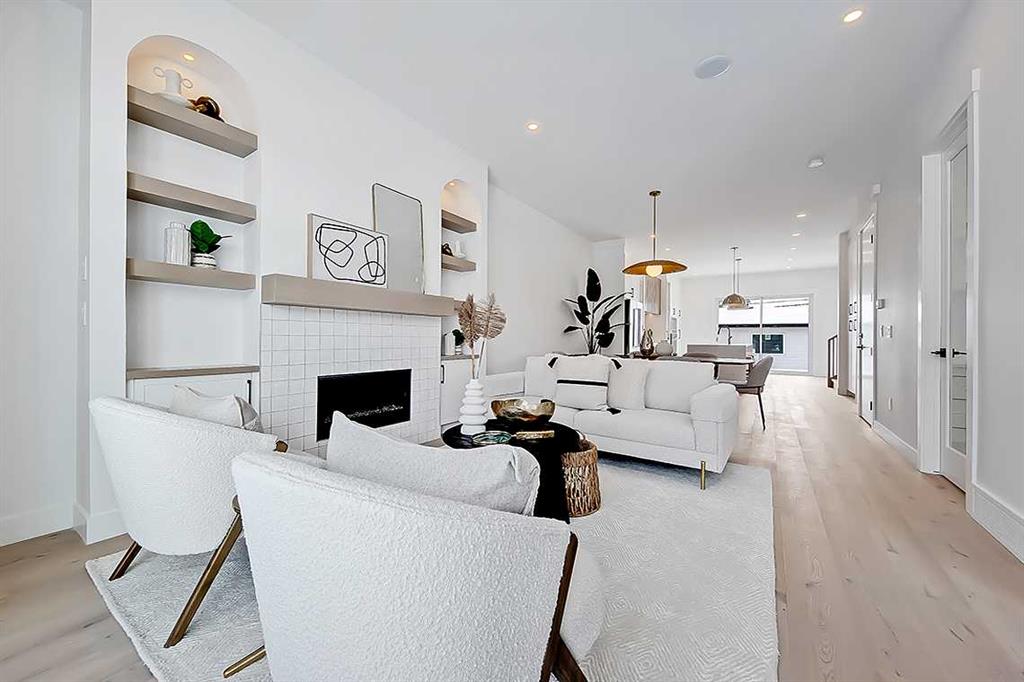 *Both sides available* Come view this stunning modern masterpiece nestled in the heart of South Calgary! This home perfectly combines Nordic architectural elements with Mid-Century design, offering a serene retreat with every urban convenience at your doorstep. Step inside and be greeted by an airy, open-concept layout across 2,036 sq ft thoughtfully designed to maximize natural light, with a RARE 829 sq ft WALKOUT LOWER SUITE (subject to approvals by the city)! The spacious living room, with its large windows, warm white oak millwork, & custom archways, sets the tone for comfortable elegance. Whether it's a cozy night by the fireplace or entertaining guests, this space offers a welcoming ambiance for every occasion. At the heart of the home, the kitchen is a true chef’s delight. It features high-end built-in KitchenAid appliances, sleek tile details, & a bright, breezy colour palette that makes culinary creativity a joy. The oversized island is perfect for casual gatherings or prepping your favourite meals. Plus, the flow from the kitchen to the oversized South-facing deck makes it effortless to enjoy Calgary's beautiful sunsets, whether you’re hosting a summer BBQ or having a quiet morning coffee. On the main floor, you’ll also find a private office space with a chic glass door & a thoughtfully designed mudroom, keeping the space organized & functional for everyday life. The stylish powder room rounds off the main level with a modern touch. Heading upstairs, the primary suite is a true oasis. Vaulted ceilings, massive windows, & a private balcony invite you to relax in your own peaceful retreat. The ensuite is designed for indulgence, featuring matte stone tiles, natural wood cabinetry, heated floors, a luxurious steam shower w/ body jets, & a deep soaker tub for those long, relaxing baths. The upper floor also offers two additional generously sized bedrooms with tray ceilings & a built-in niche on the upper landing, perfect for kids’ homework or extra storage. Conveniently located on this level is the well-appointed laundry room, adding practicality to luxury living. As a bonus, this property includes a LEGAL LOWER-LEVEL WALKOUT SUITE, complete with two bedrooms, a full kitchen, its own laundry facilities, a contemporary 4-pc bathroom, and a PRIVATE PATIO! This space offers incredible versatility, whether you’re looking to generate rental income, host guests, or have a multi-generational living arrangement. Located in the heart of Marda Loop, one of Calgary’s most sought-after communities, you’ll enjoy being just steps from trendy shops, top-notch restaurants, local cafes, & beautiful parks. The area’s lively atmosphere, combined with the home’s tranquil design, offers the perfect balance for urban living. With over 2,850 square feet of meticulously crafted space, 10-foot ceilings on the main level, & 9-foot ceilings throughout, this home is an incredible opportunity to own a luxurious property in a prime location. *Photos are from similar project by the builder*