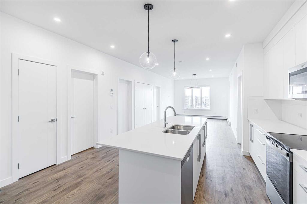 This stunning 1,085 sq ft top-floor corner unit condo offers 2 bedrooms, 2 full bathrooms, a versatile den, and convenient in-unit laundry, all within a brand new building. The open-concept layout features large windows that flood the space with natural light, complemented by quartz countertops and stainless steel appliances in the modern kitchen. The spacious master bedroom includes a private en-suite, while the den can serve as an office or guest room. With lots of visitor parking and just steps away from shopping, restaurants, and transit, this condo combines luxury living with unbeatable convenience. Move-in ready and perfect for those seeking a contemporary lifestyle!