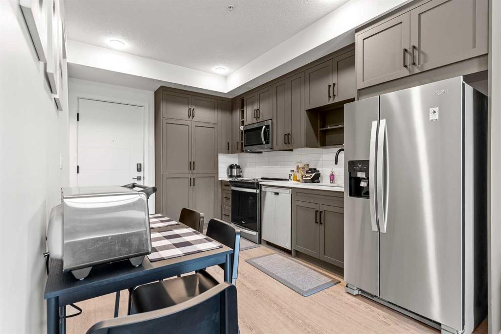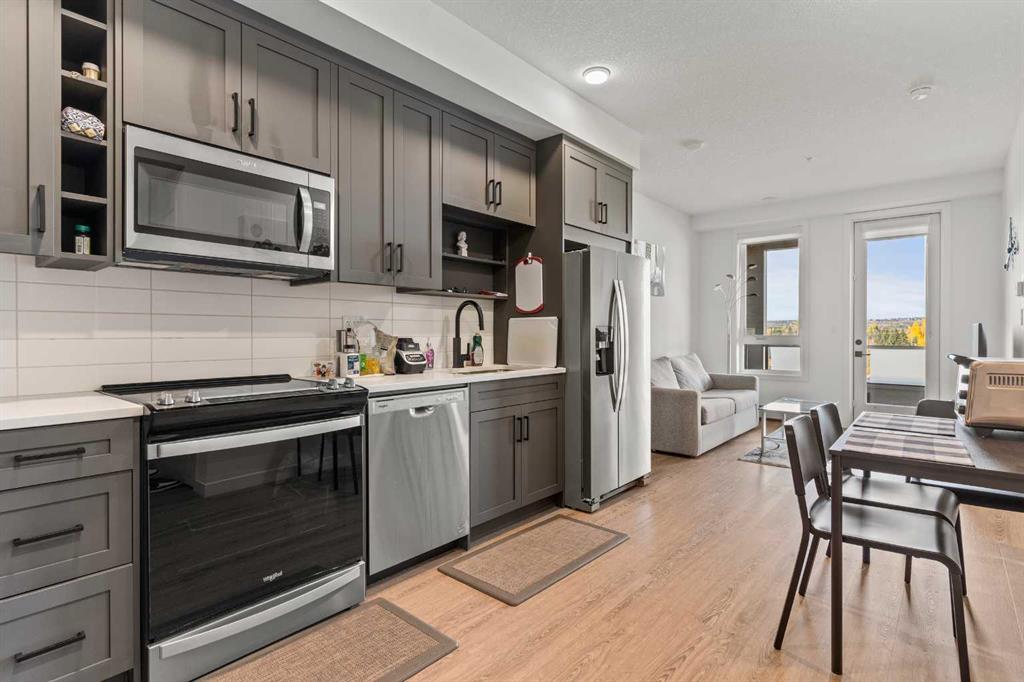 Experience the best of urban living in Calgary’s vibrant University District! This stylish 1-bedroom, 1-bathroom condo offers modern comfort and convenience on the 3rd floor. The open-concept layout seamlessly connects the kitchen, dining, and living areas, featuring sleek cabinets, stainless steel appliances, and ample storage. The unit includes in-suite laundry with extra storage, a bright 3-piece bathroom, and elegant flooring throughout. The spacious bedroom with large windows and a walk-in closet offers a peaceful retreat. Step out onto the sunny balcony with privacy walls—perfect for relaxing or dining. Ideal for investors, this prime location is close to the University of Calgary, hospitals, Market Mall, and a wealth of amenities just steps away, including a cineplex, trendy restaurants, and more. Everyday essentials like Shoppers Drug Mart and a dental office are conveniently located on the main floor. Schedule your showing today.