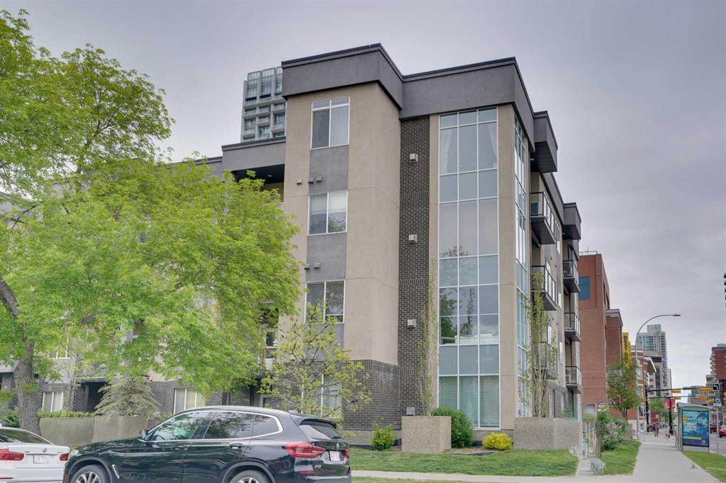 This beautifully maintained two-bedroom unit on a tree-lined street in the heart of Lower Mount Royal offers executive living in this prime downtown location. Walking distance to trendy 17th Ave restaurants & shops, this property boasts a fantastic layout with two bedrooms and two baths, formal dining room, and a large living room with a corner gas fireplace. With over 1,148 square feet of living space, (one of the largest units) you’ll love the custom features throughout, such as 9-foot ceilings, tile and brazilian hardwood cherry floors. The generous kitchen, features abundant contemporary maple cabinetry, stainless-steel appliances, granite counters, and a large breakfast bar. A huge living and formal dining room area can accomodate the perfect setting, including a bulild in corner gas fireplace. The large primary bedroom offers a huge walk-in closet and private 4pc. ensuite, with a curved soaker tub, and granite counters. The second bedroom is spacious, and excellent for a roommate or home office. An additional 4 pc bath with granite counters is perfect. The added convenience of a gas BBQ line on the balcony & a heated parking stall in the secured underground parkade, complete the highlights of this exceptional condo. The Mantra is a well-maintained and well-managed building, with two elevators and double security doors. Additionally, there is a locked bike storage room, and one of the best parking spots in the building. A fantastic location, one of the largest units, move in ready, all at a great price. Dont miss this one!
