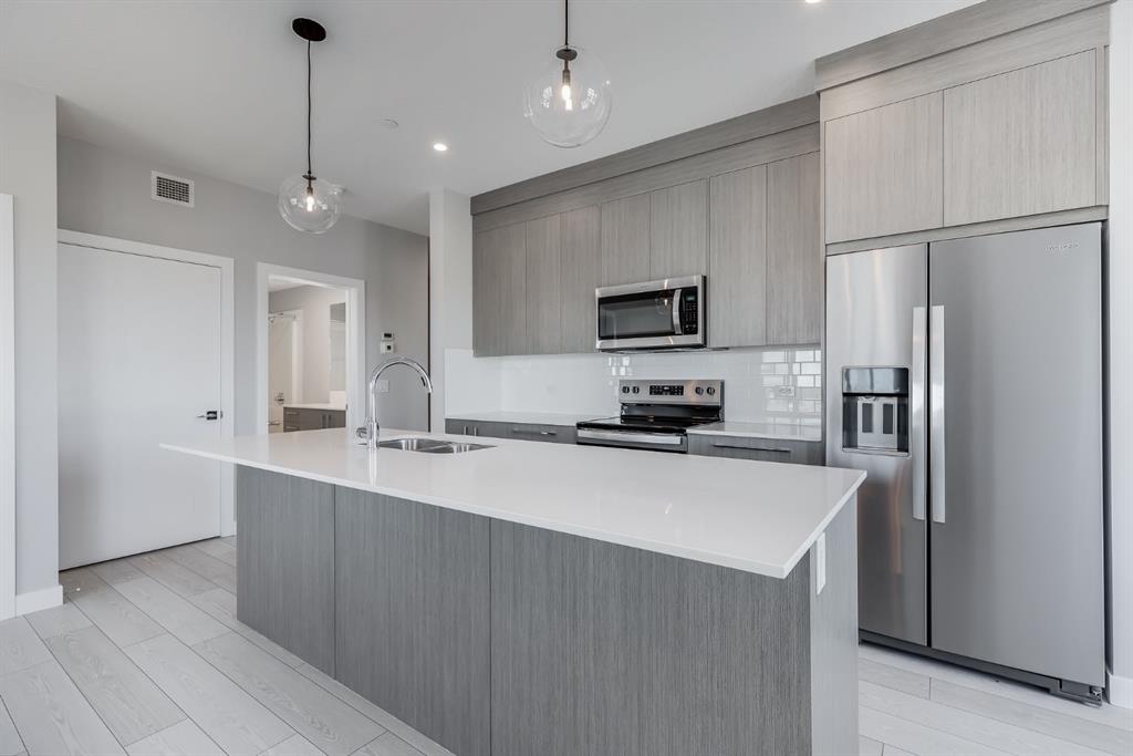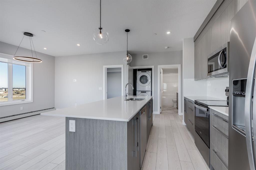 Public Remarks HIGHLIGHTS: Brand NEW 5th Floor CORNER unit with amazing Mountian and downtown city views!| Stainless Steel Appliances | Tall Ceilings. Welcome to Skyview North by TRUMAN! This brand-new, never-lived-in condo offers 1058 sqft of modern living space. The unit features two bedrooms, each with a walk-in closet, and two elegantly appointed bathrooms. Additionally, a versatile nook provides the perfect space for a home office. Large, bright windows fill the open-concept living area with natural light, while the custom chef-inspired kitchen shines with stainless steel appliances, soft-close cabinetry, and quartz countertops. Enjoy the convenience of in-unit laundry and a titled under ground parking stall. Located in the vibrant community of Skyview Ranch, you're just steps away from shopping at Sky Point Landing, green spaces, and extensive playgrounds. With easy access to Stoney and Deerfoot Trails, commuting is effortless. Don’t miss your chance to experience exceptional living at Skyview North.