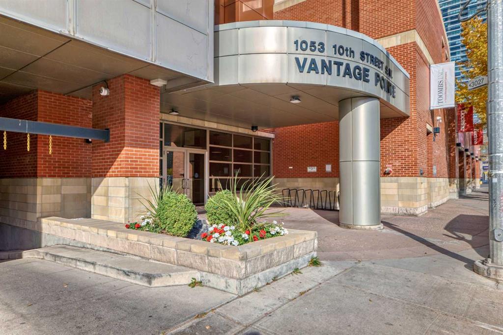 this 690 sq ft , 1 Bedroom and Den unit that could be used as a 2 bedroom! Stunning West views from this beautiful unit. This condo was just freshly painted and has brand new Luxury Vinyl Plank Flooring. A convenient maintenance free urban lifestyle awaits in the amenity-rich Vantage Pointe building with a 24 hour Concierge, a great fitness room and a heated underground Titled Parking. Located in the midst of Calgary's premier entertainment district directly across the street from CO-OP and just walking distance from vibrant 17th AV with nightlife dining , pubs, diverse shops and much more. This 1 bedroom +Den (could be used as a second Bedroom) with high ceilings, open floor plan and lot of natural lite through out, encourages unobstructed conversations with family and friends. This unit offers as well great Kitchen with a lot of cabinets, in-suite laundry, good size bedroom with a cheating door to 4 pc bathroom. Condo fees include electricity, heat water and sewer. Move-in ready and an incredible location with a perfect walk score, this home has it all, and it is steps away from C-Train Station.