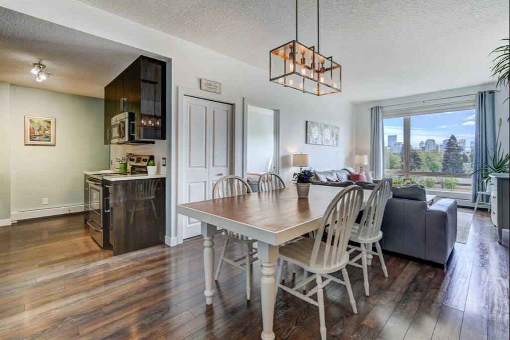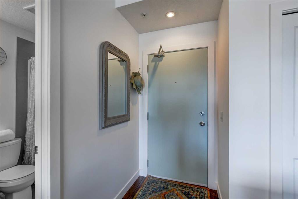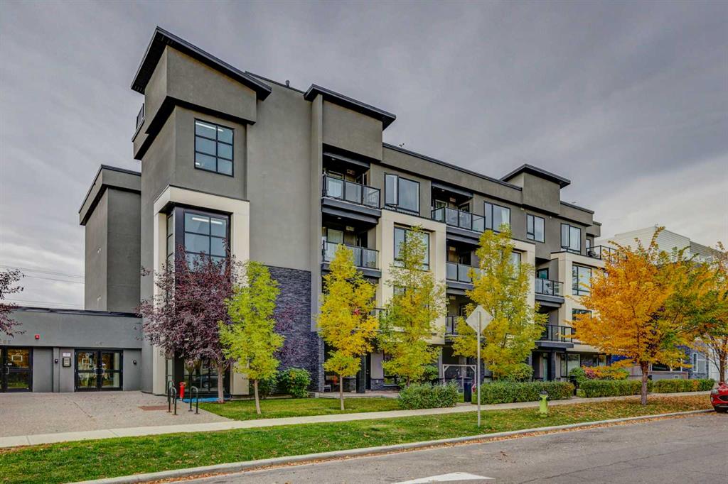 You'll be impressed with the numerous perks in this 2 bed/2 bath condo! To name a few...Top floor location with no neighbours above and a corner unit offers more of a quieter living experience with fewer shared walls ~ An elevated unobstructed beautiful view of the downtown ~ The southern exposure allows for an abundance of natural light to permeate the space ~ The A/C unit provides added comfort in the warmer days of summer ~ The spacious open floor plan houses bedrooms on opposite sides of the main living area ~ A Primary bedroom ensuite ~ In suite laundry ~ A Titled (Owned) indoor parking stall as well as an assigned storage locker...and the list continues! For anyone with mobility issues or one that appreciates life's conveniences, the parking stall is located directly across from the elevator door as well is the Condo Unit once on the 4th floor. In addition, your bicycle can be stored in an area within the parkade. The kitchen houses a generously sized pantry, stainless steel appliances, quartz countertops and easy care sleek acrylic cabinetry. The same quartz/cabinet finishings are found in the 2 bathrooms. The condo's layout presents an opportunity for a roommate to aid as a mortgage helper or likewise value for an Investor. Located a block off 16th Ave. NW with City transit, plenty of choices to head in any direction for a variety of business services, restaurants, shopping/west to North Hill Mall and SAIT. This well located NW inner-City home presents beautifully and is to be seen in its' entirety to be appreciated all the more!