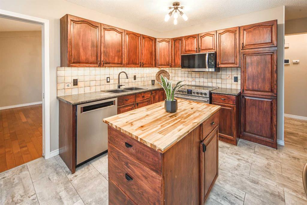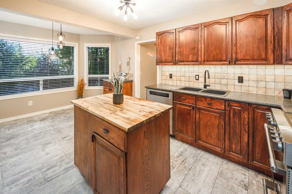 Open House October 19, Saturday 1:00-4:00pm, Welcome to Edgebank Circle! This exceptional home is perfectly situated within walking distance of the highly regarded Edgemont Elementary School and Tom Baines Middle School. This is the opportunity you've been waiting for! As you step inside, you'll be greeted by beautiful hardwood flooring that extends throughout the living and dining areas. The large windows allow natural light to flood the space, creating a bright and inviting atmosphere. The heart of the home is the kitchen, which features ample cupboard and counter space, stainless steel appliances, and a central island with a butcher block countertop. The adjacent eating nook overlooks the expansive south-facing backyard with back lane and provides access to the upper deck. In the living room, you'll find a cozy wood-burning fireplace surrounded by built-in shelving, perfect for relaxing. A convenient 2-piece powder room and main floor laundry complete this level.Upstairs, the primary retreat awaits, offering a newly renovated ensuite oasis with in-floor heating, a tile shower, and a large soaker tub. Down the hall, there are two additional bedrooms and another newly renovated full bathroom. The walk-out, fully developed basement boasts 2 more bedrooms and an office space, a full bathroom, and a large rumpus room, along with plenty of storage. Step outside onto the patio and enjoy the privacy of the backyard, surrounded by mature trees. This home is located in a well-established community and offers numerous updates, including a new furnace (2019) and the removal of 95% of the poly B plumbing. If you're seeking a fantastic family home in a great neighborhood, this is it! Contact your favorite realtor today to schedule a private viewing.