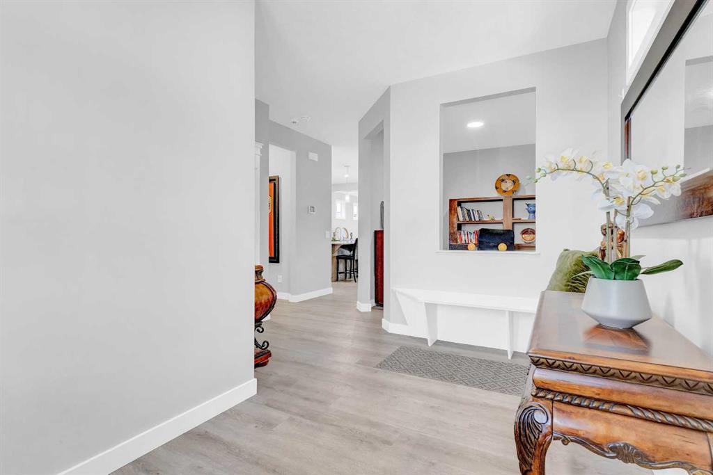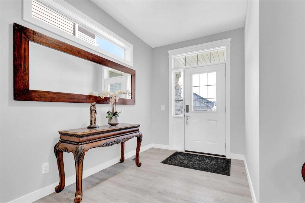 3D Tour Available. SHOWS 10/10!! Welcome to this exquisite front garage property in the desired and established community of Ravenswood in Airdrie. This home features a total of 6 Bedrooms with 3.5 Washrooms and separate entry to basement with 3600 Sq ft (approx.) of living area. Upon arrival, you are greeted by an oversized foyer with beautiful luxury vinyl plank flooring and a spacious main floor office/flex room with large window and 9' ceilings that sprawl into the open concept main floor. The open space features a gorgeous white gourmet kitchen with extended upper cabinets, pot and pan drawers, quartz counters, walk through corner pantry, gas range with chimney hood fan and an extra long kitchen island. The kitchen has upgraded high end appliances. The living room features large windows with full floor to ceiling tile natural gas fireplace. The dining area is bright and hosts an oversized table and opens to the large backyard with an extended cement patio deck and huge landscaped back yard. The upper level features a large central bonus room and 4 big size bedrooms. The primary bedroom has a large walk-in closet and beautiful 5 piece ensuite with dual vanity sinks, standing shower with full tile to ceiling and soaker tub. Two bedrooms have large closets and the third bedroom has a walk in closet. They all have a common 5 piece bathroom with dual vanity sinks and a large laundry room complete with granite counter top and storage racks. The beautiful professionally developed basement with permits has a separate side entrance with 2 big bedrooms with walk in closets , 3 piece washroom, large wet bar w/ dishwasher and oversized fridge, and a big recreational area. Basement also has a stand up washer/dryer room and linen closet. Basement is currently used as a successful Airbnb hosting place. Big backyard has a beautiful oversized cement patio with gas hookup, yard shed/cement pad, and ample space for kids to enjoy. The house offers a heated garage with built in racks on both sides for extra storage. Ravenswood is family friendly neighbourhood host to 8.2 hectares of strategically placed greenspace, 6 convenient parks, four amazing playgrounds and a community soccer field all connected by 2.4 kms of winding scenic pathways. Resident also enjoy the close proximity to wide variety of dining, shopping, dining entertainment places which includes Walmart, Superstore, Cross iron mall and Costco with 15 min drive to the Calgary International Airport and 30 min to Calgary Downtown. This is your opportunity !!