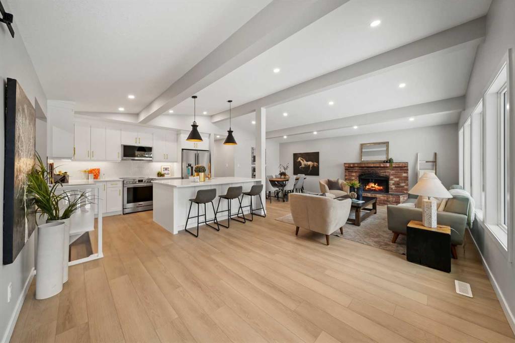 Discover your dream home in the charming Willow Park neighborhood! This beautifully renovated bungalow features an open floor plan with vaulted ceilings, offering a bright and inviting living space. The living room boasts a cozy wood-burning brick fireplace, seamlessly flowing into the dining area and a well-designed kitchen. All three bedrooms are thoughtfully located away from the entertaining areas, ensuring privacy and tranquility. The master suite includes a full en-suite bathroom and a custom closet. Two additional bedrooms share a conveniently located main bathroom. The expansive family room is a highlight, featuring a skylight, shiplap fireplace wall, and a bar, making it the perfect space for gatherings. Large patio doors enhance the indoor-outdoor experience, especially in the summer months. The basement offers a spacious rec room ideal for games and relaxation, complete with a third fireplace and a second bar area. Two additional large bedrooms, a full bathroom, laundry room, and ample storage round out this level. The oversized single attached garage provides easy access to the kitchen - makes easy to bring groceries in. The home is equipped with new windows, a new furnace, new hot water tank, new stucco, a new deck, and a new concrete pad—just to name a few upgrades! Don't miss your chance to own this exceptional property that combines modern amenities with cozy charm. Schedule a viewing today! Double garage can be built at the back- already checked with the city.