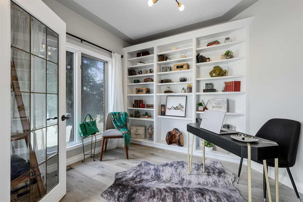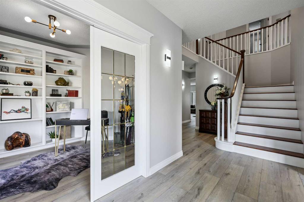 Presenting an exceptional opportunity for distinguished buyers in the prestigious S.W, community of Canyon Creek Estates, this luxurious residence offers over 5,400 square feet of meticulously designed living space. Boasting outstanding curb appeal, the property features a charming front patio, perfect for lounging with neighbors on tranquil evenings. As you step inside, you are greeted by a warm and inviting spacious foyer, adorned with new LVP flooring that flows seamlessly throughout the main level. This home has undergone extensive renovations, including a dream kitchen equipped with high-end appliances, a wine fridge, and an upscale sink with a multi-purpose faucet-perfect for culinary enthusiasts. The family room is an entertainer's delight, with abundant windows that bathe the space in natural light from the west facing backyard. Just off the foyer, is the formal dining room, generously sized to accommodate dinner parties of up to 12 guests, alongside a formal living room that provides an elegant atmosphere for gatherings. Convenience meets functionality with a well-placed office near the entrance, ideal for those who work from home or require a quiet space for focus. Ascend to the upper level, where French doors lead to the expansive primary bedroom, a serene retreat featuring a newly updated ensuite bathroom designed for spa-like indulgence. The lavish walk-in closet boasts built-in storage solutions, enhancing organization and elegance. Three additional generously sized bedrooms cater to the needs of a growing family with a 5 piece main bathroom for the kids.The bonus room sets the perfect ambiance for cozy movie nights, while the walk-out basement is designed for entertaining, complete with a fifth bedroom and a 3-piece bathroom, ideal for sports enthusiasts and social gatherings. Outside, the property extends its living space with an upper deck with a new levelling concrete topping, installed with an elastomeric underlay, and a lower walk-out area, perfect for enjoying the outdoors while cheering on your favourite team. Additional features: AGA stove, tandem triple car garage, cedar shake replacement on the roof, 2 regularly serviced furnaces, and much more. Situated on a quiet street, this remarkable family home is a haven of potential, just a short walk from the breathtaking landscapes of Fish Creek Park. Experience luxury living in Canyon Creek Estates-where comfort, style, and convenience blend seamlessly. Schedule your private showing today!