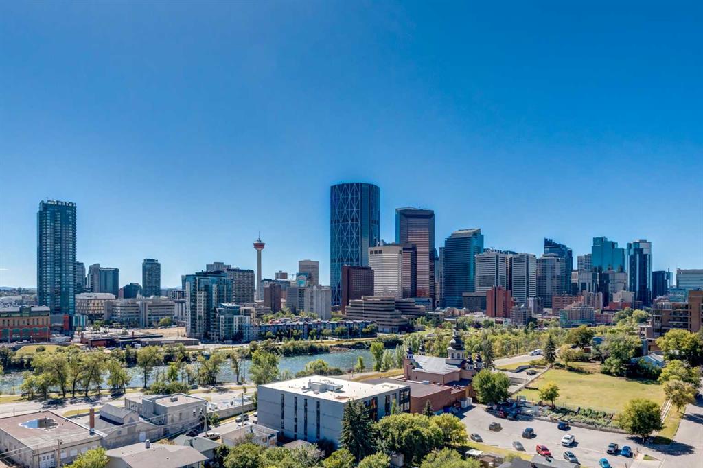 AIRBNB FRIENDLY COMPLEX ~ UNDERGROUND PARKING ~ AIR CONDITIONING ~ DOWNTOWN VIEWS ~ ROOF TOP PATIO. Experience the best of downtown living in this affordable and well laid out 1 bedroom/ 1 bedroom condo. Centered perfectly between the desirable communities of Bridgeland and Crescent Heights, this chic unit features neutral color pallet, luxury vinyl plank flooring throughout and an open floorplan flooded in natural light. The modern kitchen is well equipped with ample soft close cabinetry, quartz countertops, under cabinet lighting, stainless steel appliances and a dual sided island to gather around. Off the living room you have access to a private, sunny WEST facing balcony with unobstructed views of downtown. A spacious bedroom, 4 piece bathroom, and convenient insuite laundry/storage closet complete this unit. Don't overlook the central AC, titled parking stall, a titled storage locker for your extra belongings. Residents can relax on the incredible rooftop patio with firepits, BBQ's and panoramic city views, plus a shared indoor workspace. Developed by Minto Communities, the Era building was sustainably built for the future targeting LEED certification. A smart security and resident engagement system is integrated with the units offering one way video calling, facial recognition access, package locker integration, community messaging and virtual concierge services. Located in a prime location, Era is just steps away from fantastic shops, restaurants, parks, playgrounds, the river pathway system, downtown Calgary and transit options including the Bridgeland LRT station. Fantastic investment for both first-time buyers and investors alike with short term rentals such as AirBnB permitted (48 hour stay minimum).