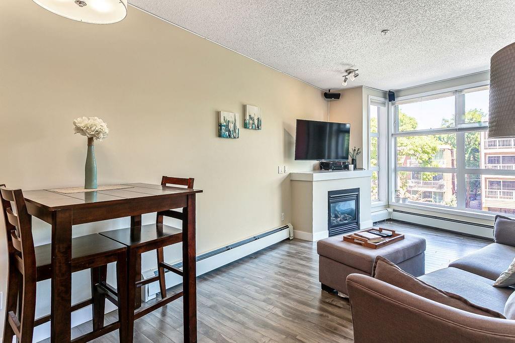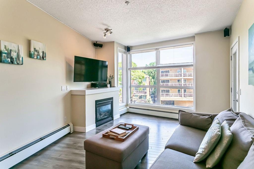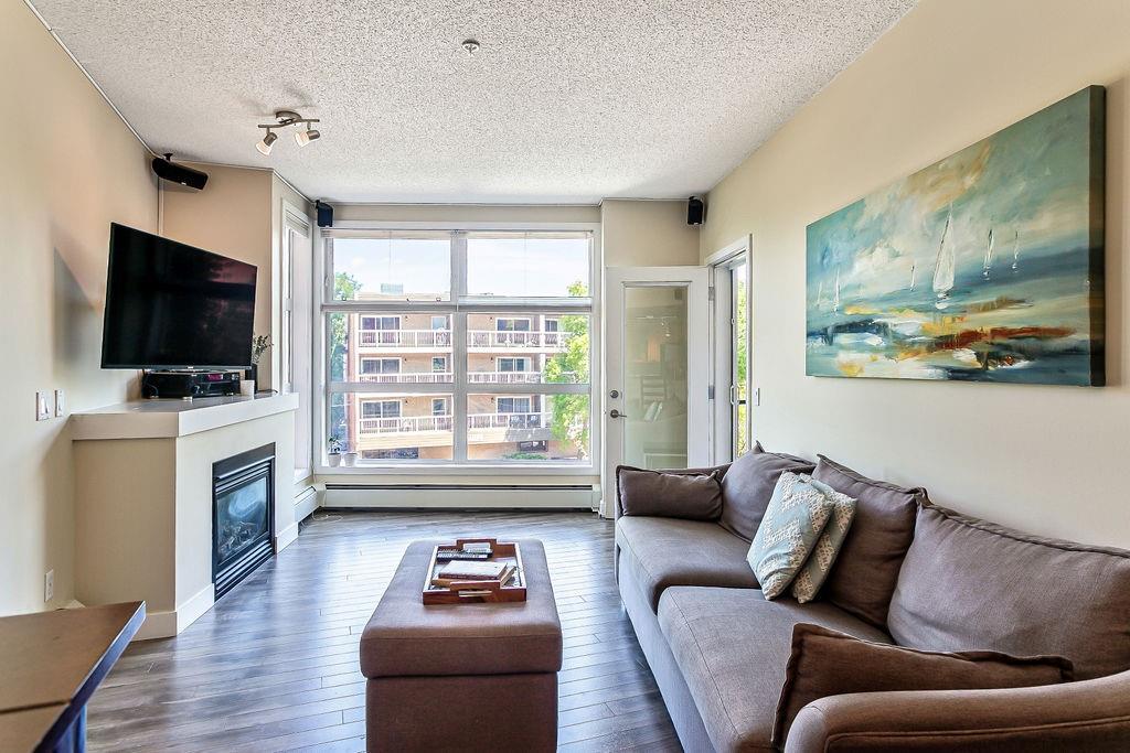 Live and play in Mission - one of Calgary's most sought-after inner city communities! OPTION TO PURCHASE FULLY FURNISHED! Literally steps away from 4th street's restaurants and shops and equally close to the Elbow River's paths. This super cozy, funky one bedroom third floor, downtown-facing condo has it all. Fantastic office/den greets you as you enter, then a well appointed kitchen and breakfast bar leads to the dining/living area. A gas fireplace and newer laminate flooring create a cool flow out to the street-facing patio with built-in gas line for the barbeque. Huge master, walk-thru closet and a 4-piece bathroom and in-suite laundry complete your new inner-city lifestyle. Titled, heated underground parking and additional storage locker are fantastic bonuses. All furniture is negotiable! You've always wanted to live in Mission - this is the time and this is the building. Book a showing today!
