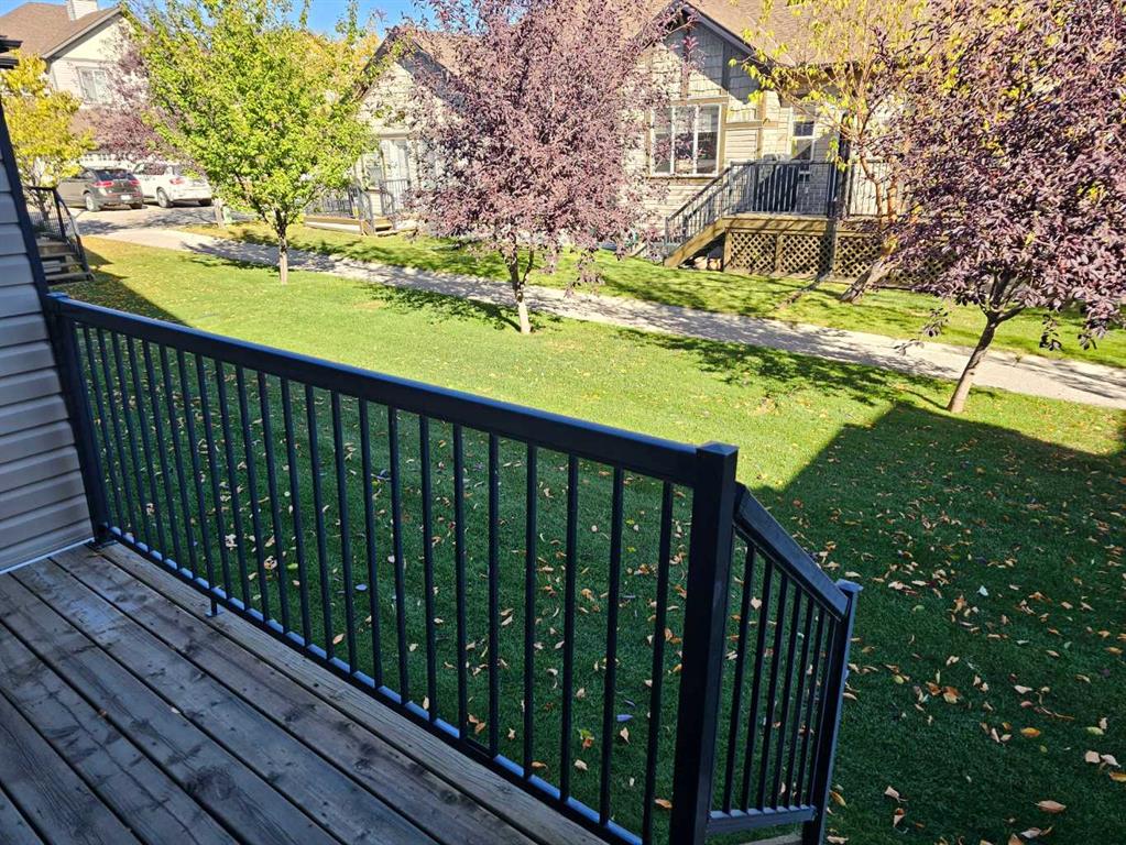 Great townhome in Airdrie's Premier Address, Cooper's Crossing! Nice, mature treed, Storm Retention Pond with pathway around it for evening strolls. Open Plan from front entry with nice gas fireplace, in Living room complete with mantle, with Kitchen/Eating area. Great for entertaining! Off to your right is an oak spindle, split staircase up to the upper level. I nice combination of Oak & White trim finishing throughout. 3 Bedrooms up, Master w/walk-in closet, and spacious Ensuite bath. Nice West facing Bonus room completes the upper floor. Main Floor Laundry, and Mud-room with door leading to the attached double garage with opener. Beautiful spacious Oak Kitchen, with eating area overlooking the rear yard, and pathway. At nearly 1700 ft2, this home is one of the larger units in the area. Nice deck for your bar-b-que or smoker, stairs down to the grass. There is a nominal HOA Fee in Cooper's approx. $60/year included in the monthly condo fee. It goes towards the additional landscaping care in the Cooper's Crossing Subdivision & Pathways. Professionally Managed by Astoria Property Management in Airdrie. Don't delay, easy to see.