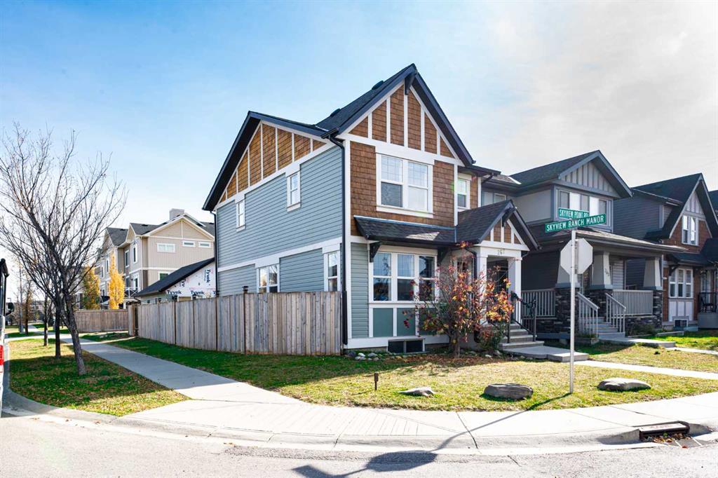 FIRST TIME HOME BUYER and INVESTOR ALERT! Welcome to this beautiful 1347 Sqft two-story Corner Lot Detached house with the Illegal basement suite, Double Detached Oversized Garage and RV Parking located in most desirable community of Skyview. The main floor welcomes you with a bright and open floor plan featuring a spacious living room, a formal Dining area, a well-appointed kitchen, 2-piece bath and a Laundry. On upper Level You are greeted by a Master bedroom with a 4 Piece Ensuite & a walk in Closet. Other two Bedrooms on upper level shares a common 4 Piece Bath. SEPARATE SIDE ENTRANCE leads to bright self-contained one BEDROOM and a Den illegal basement suite including its own kitchen, full 3piece bath, Spacious family room and Separate laundry. House also Includes RV Parking and Double Detached oversized Garage. The Double Detached Garage provides ample space for parking and extra storage space. This Corner lot house has many large windows to bring the natural light. New Microwave has been installed, New Roof, New Gutters and downspouts. This house is a few minutes drive to shopping plazas, all major highways, Cross iron mills, YYC airport and other amenities. Book Your Showings Today!