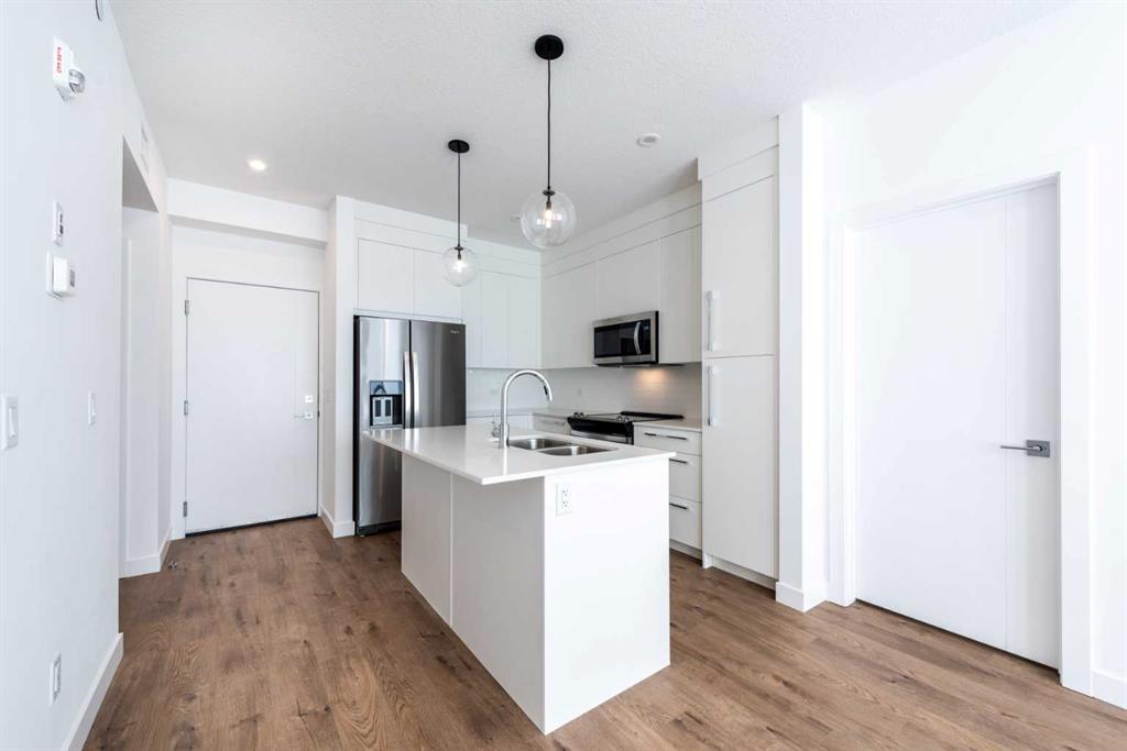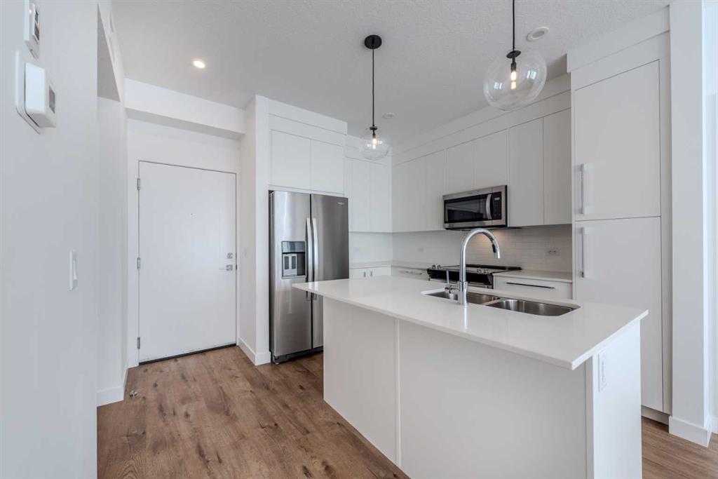 Discover modern living in this brand new constructed, never occupied 2 bedroom, 2 full bathroom apartment located on the top floor of a newly built vibrant community of Wolf Willow along with underground titled parking. The unit is perfectly situated for easy access while the sun-filled home offers a seamless blend of style, comfort, durability and convenience. The open concept living space is bathed in beautiful natural light, while the sleek, modern beautiful kitchen is equipped with brand new high end appliances and marvelous quartz countertops. This apartment comes with brand new appliances and convenience of a separate in-unit laundry. The next door complex gives you access to a full gym, pet wash area and also, have an access to your assigned indoor storage. You can book a wonderful, classy furnished common room with projector and balcony for your special days. This community boasts abundant green spaces, ideal for enjoying outdoor activities and nature at the same time. This is the perfect home for the ones, seeking a new build in a peaceful neighborhood with a sun-lit retreat in a friendly community. Contact your realtor today to book a showing for this stunning top floor unit and you won't be disappointed!