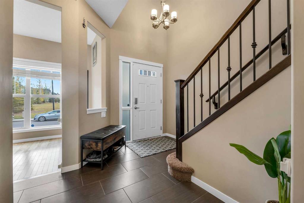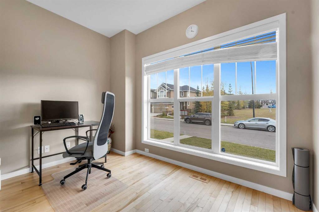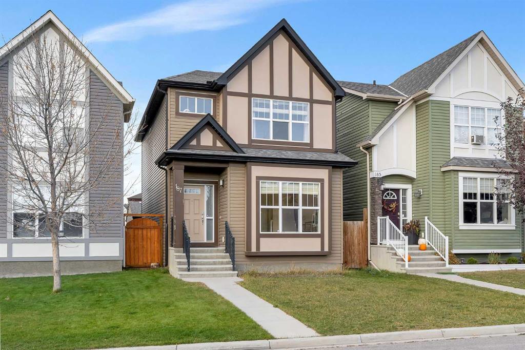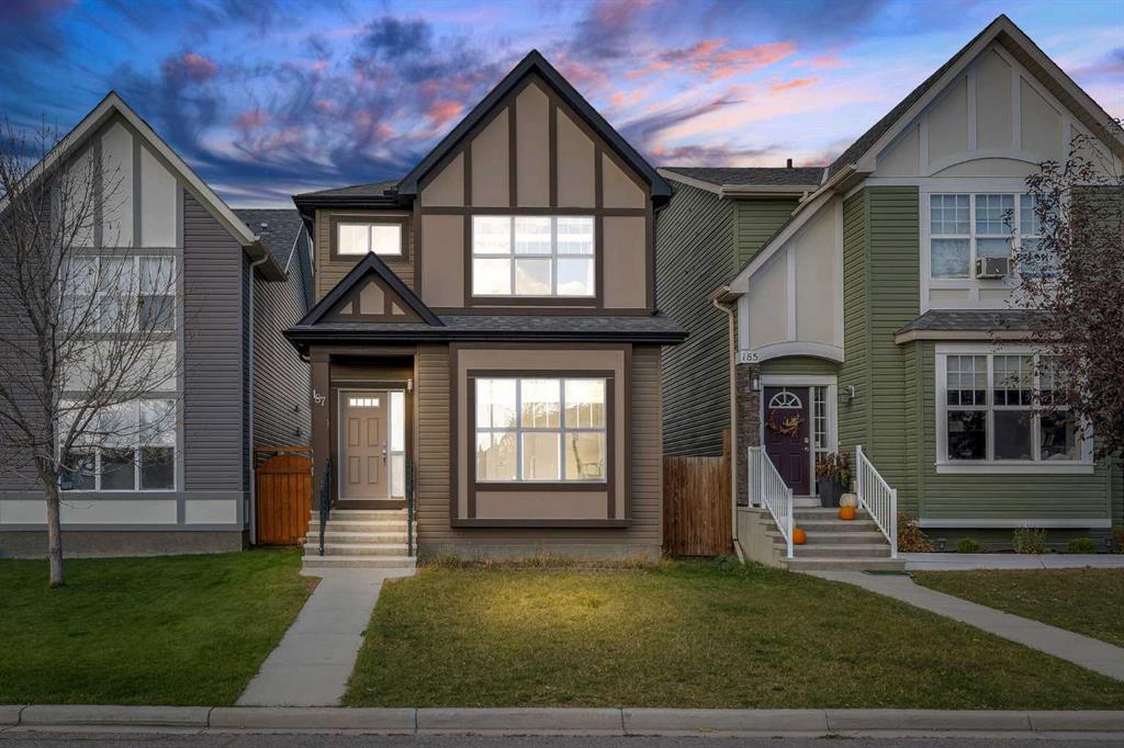 Welcome to this Stunning 4 Bedrooms, 3 1/2 Bath, Finished Basement, Central Air conditioned, 2 car Garage (2278 sq ft of total living space) detached house, Nestled on a quiet street and Friendly Neighbourhood of Evanston NW Calgary. This Gorgeous Property sits right across the PLAYGROUND and LARGE PLAY FIELD. Gorgeous MAPLE HARDWOOD and Ceramic Tiles throughout the main floor. Large Main Floor DEN with South facing Window is perfect for Work From Home. Upon entering you're greeted by an open to above entrance with an elegant chandelier, right beside you'll find a Den area which can be used as a home office area or kids play area. Upgraded Stainless Steel Appliances, Glass Tile Backsplash and Granite Counter-Tops give boost to this Open-Concept Kitchen. Corner Pantry with auto-light, Raised Breakfast Bar and Undermount Sink are more great features. CORNER GAS FIREPLACE is perfectly located in the Living Room with Large Bright Window plus Generous size Dining area. Separate MUD-ROOM off the rear of the Home leads to Pre-Treated Deck with Aluminum Railings & leads you to the backyard of the house & a 2 Car Garage. While going upstairs you will find Spindle Railing on the Stairs. Spacious Master Bedroom with Walk-in CLOSET and Full 4-Piece ENSUITE. Two additional Bedrooms up with a full 4 piece Bathroom. DOUBLE DETACHED GARAGE for our winters and CENTRAL AIR CONDITIONING FOR OUR SUMMERS. Lots of street Parking at Front. You can watch your Kids play in the Large Playfield directly across the street while you work from home. Professionally finished Basement is perfect for Movie Nights and Kids play zone. Basement also comes with 4th Bedroom and a Full 4 Piece Bathroom ideal for Guests. Basement includes Front Load Washer and Dryer and Mechanical room. Very Well Maintained Home, just minutes away from Schools, Park, Plaza, 5-7 Minutes access to Stoney trail, 15-20 Minutes to Calgary International Airport, 25 Minutes to Calgary Downtown. This is a one of the kind very well maintained house in the street. Book your showings today!!
