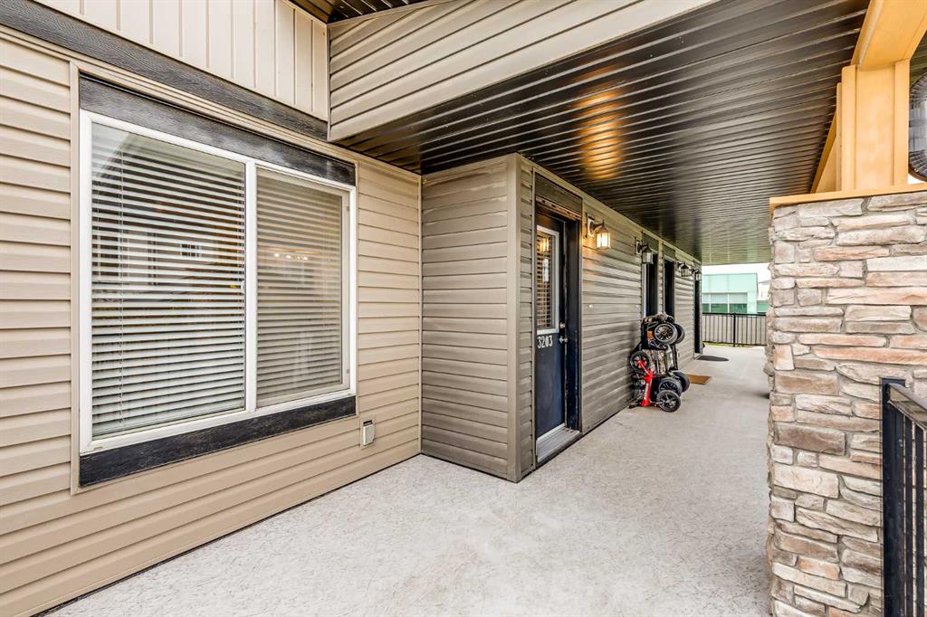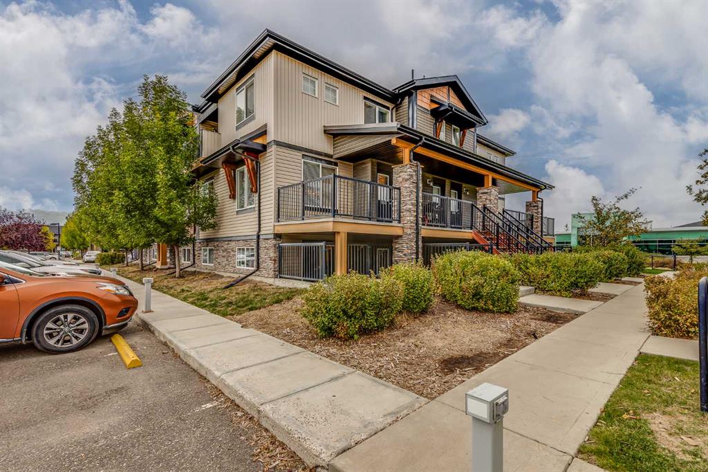 This beautifully maintained 2-bedroom, 2-bathroom main floor corner unit is a must-see! Ideal for first-time home buyers, small families, or as a revenue property, it comes with two parking stalls (one titled and one assigned), so parking is never an issue. The large front porch offers a charming seating area to enjoy warm summer days or grow some plants. The open floor plan is perfect for family time or entertaining, featuring a kitchen with granite counters, a large island, and a corner pantry. There is room for a large kitchen/dining table and the living room is a very good size as well! Because this is an end unit, it is flooded with natural light thanks to the abundance of windows. The spacious primary suite includes a 3-piece ensuite with granite countertops, a separate shower, and a walk-in closet. The second bedroom is also generously sized, and another full bathroom with granite countertops completes the space. A stacked washer and dryer are conveniently tucked away between the bedrooms. Located close to schools, parks, playgrounds, shopping, and within walking distance to Chinook Winds Regional Park, which offers ball diamonds, walking and biking pathways, green space, a skate park, and a splash park. The new 40th Ave overpass provides easy access to the highway into Calgary or the east side of Airdrie. With quick possession available, you can move into your new home as soon as you want. Don’t miss out—schedule your viewing today!