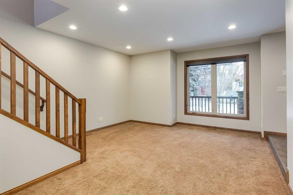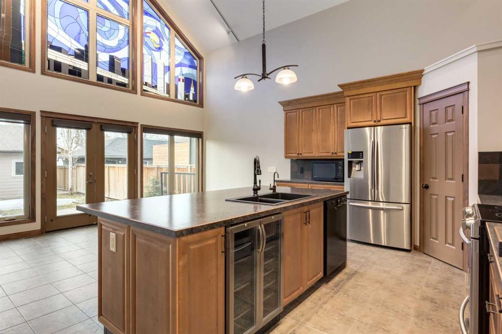Public Remarks Tucked away on one of Hillhurst's most coveted streets, this custom-built home warmly invites its lucky new owners. Its charming exterior draws you in with a welcoming front veranda that opens to a tiled foyer with a handy walk-in closet. Choose between a formal dining room or living space, accompanied by a two-piece bathroom. The two-storey vaulted great room serves as the heart of the home, showcasing a chef's kitchen with a walk-in pantry and central island. Natural light pours through a stunning stained glass mosaic of an iconic city skyline, filling the room with character and warmth. Step through the patio doors onto a sun-drenched, south-facing deck that leads to a peaceful concrete patio and the insulated, dry-walled garage. Upstairs, the primary bedroom awaits with a spacious walk-in closet and a luxurious six-piece ensuite featuring dual sinks, a shower with body wash jets, and a relaxing soaker tub. Conveniently adjacent is the laundry room. The fully developed lower level offers a generous family room, games area, and an additional full bathroom. Extras include air conditioning and a rough-in for in-floor heating. Located in a desirable neighbourhood, this home is just a short walk from Riley Park, Kensington's vibrant shops and dining, top-rated schools, downtown, public transit, and the Bow River pathway system.